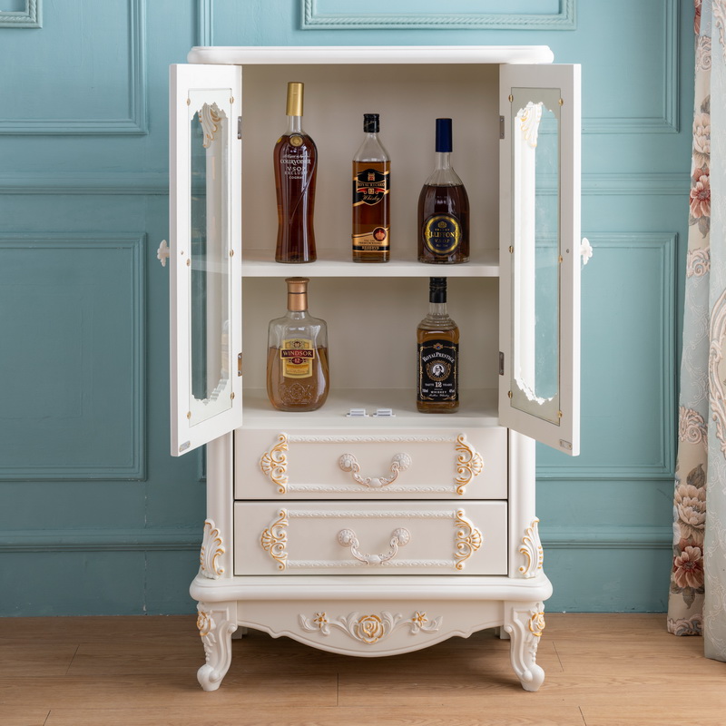 韩式雕花餐边柜欧式简约小酒柜客厅沙发电视边柜酒水柜双门玻璃柜