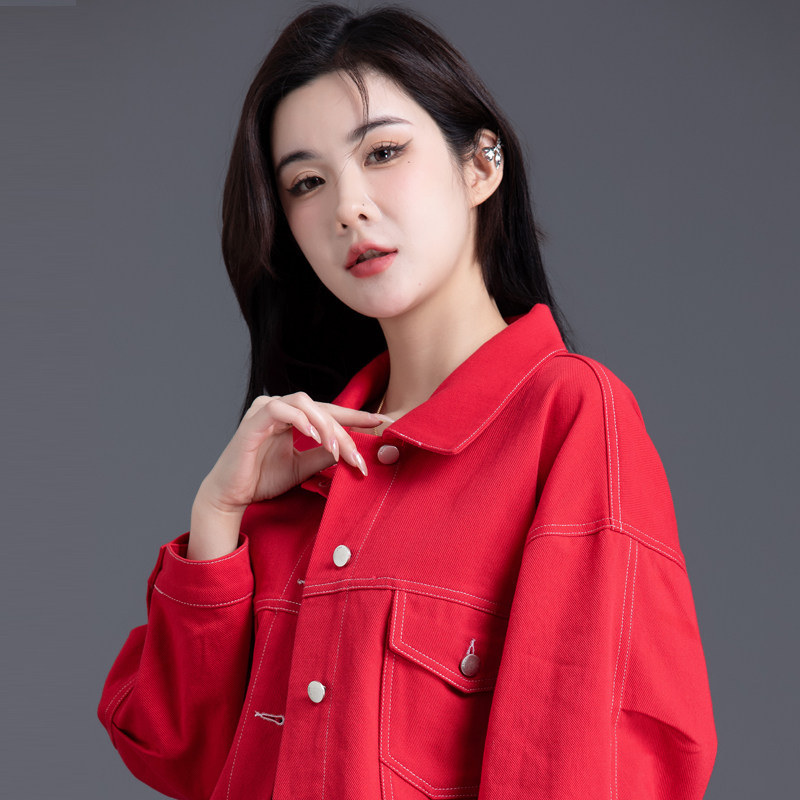 大红色牛仔外套女2026年新款春秋