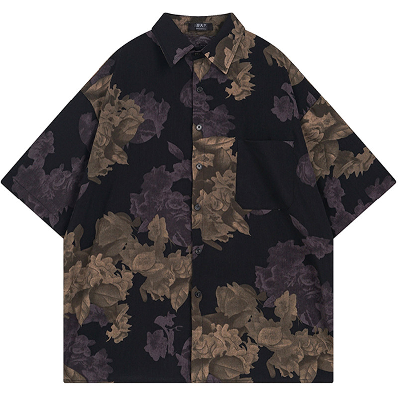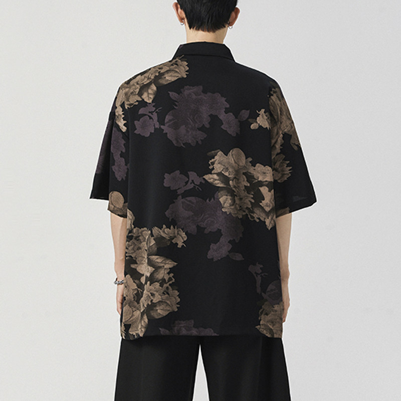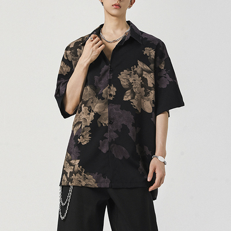 加肥加大超大号胖哥特大码肥佬花衬衣350斤冰丝复古夏短袖男衬衫