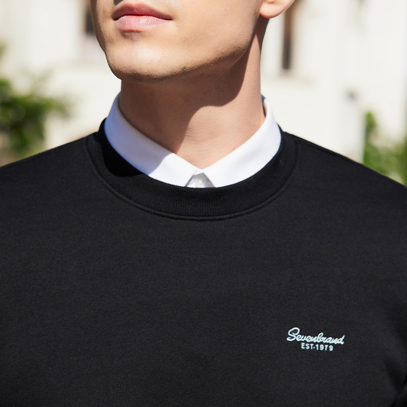 柒牌保暖加绒卫衣男 2023冬季新款男士时尚休闲圆领百搭加厚上衣