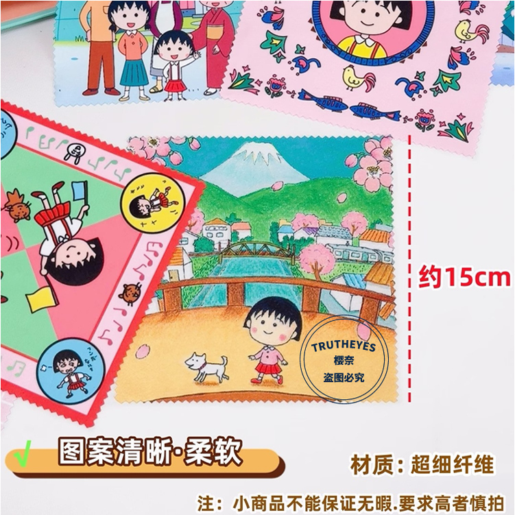 2条装 樱桃小丸子眼镜布手机屏幕相机镜头清洁卡通可爱超细纤维