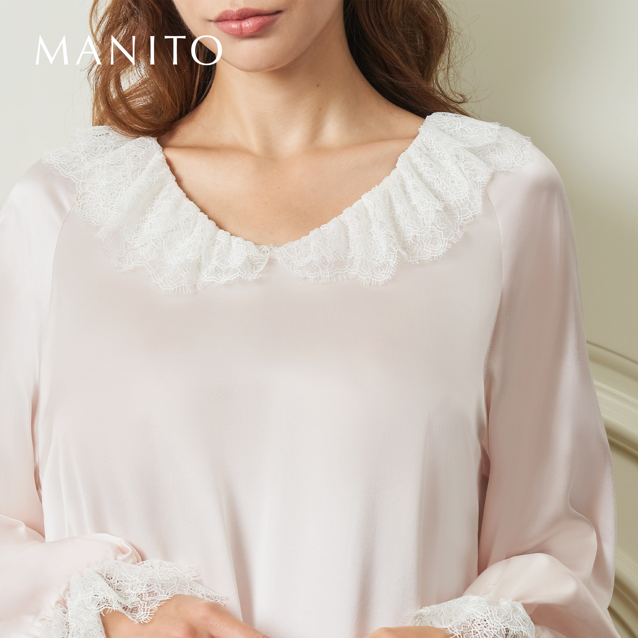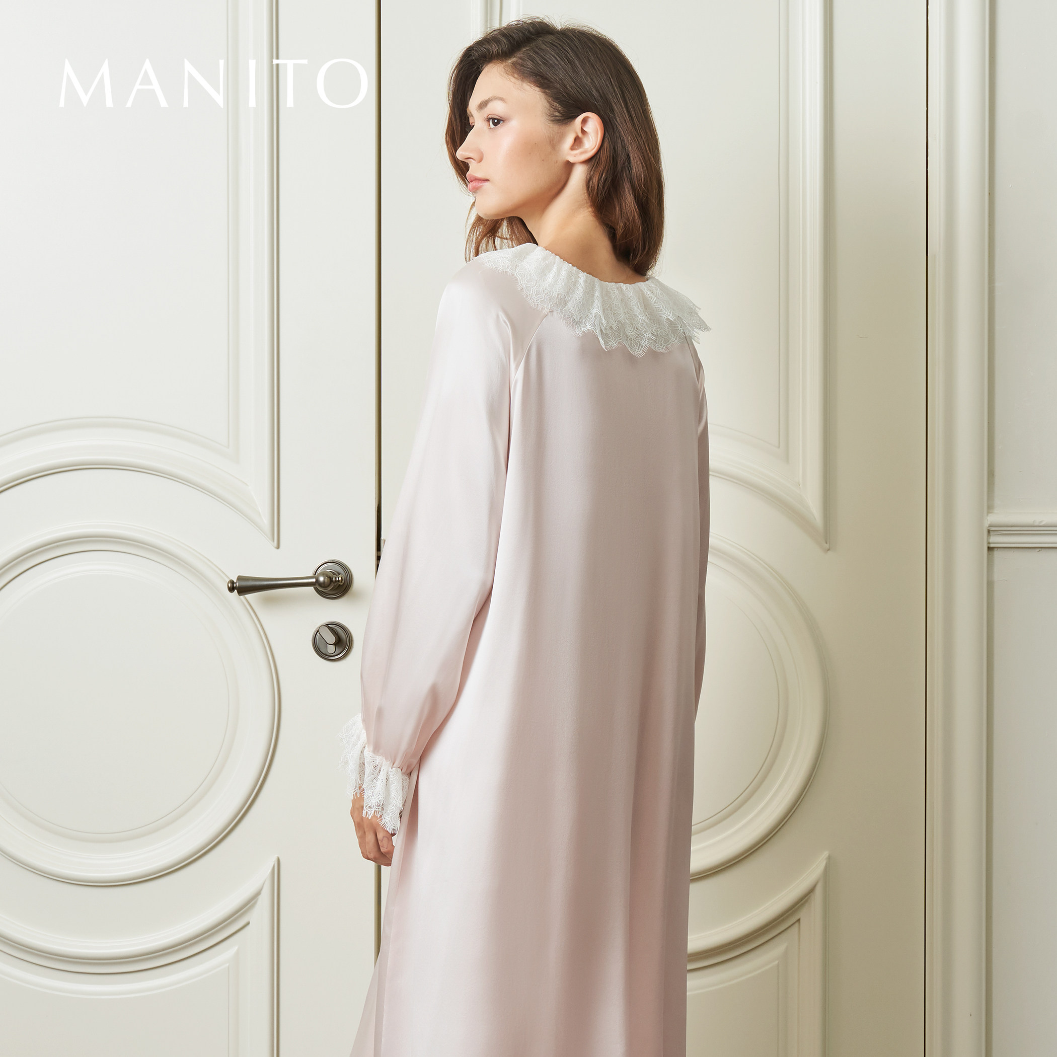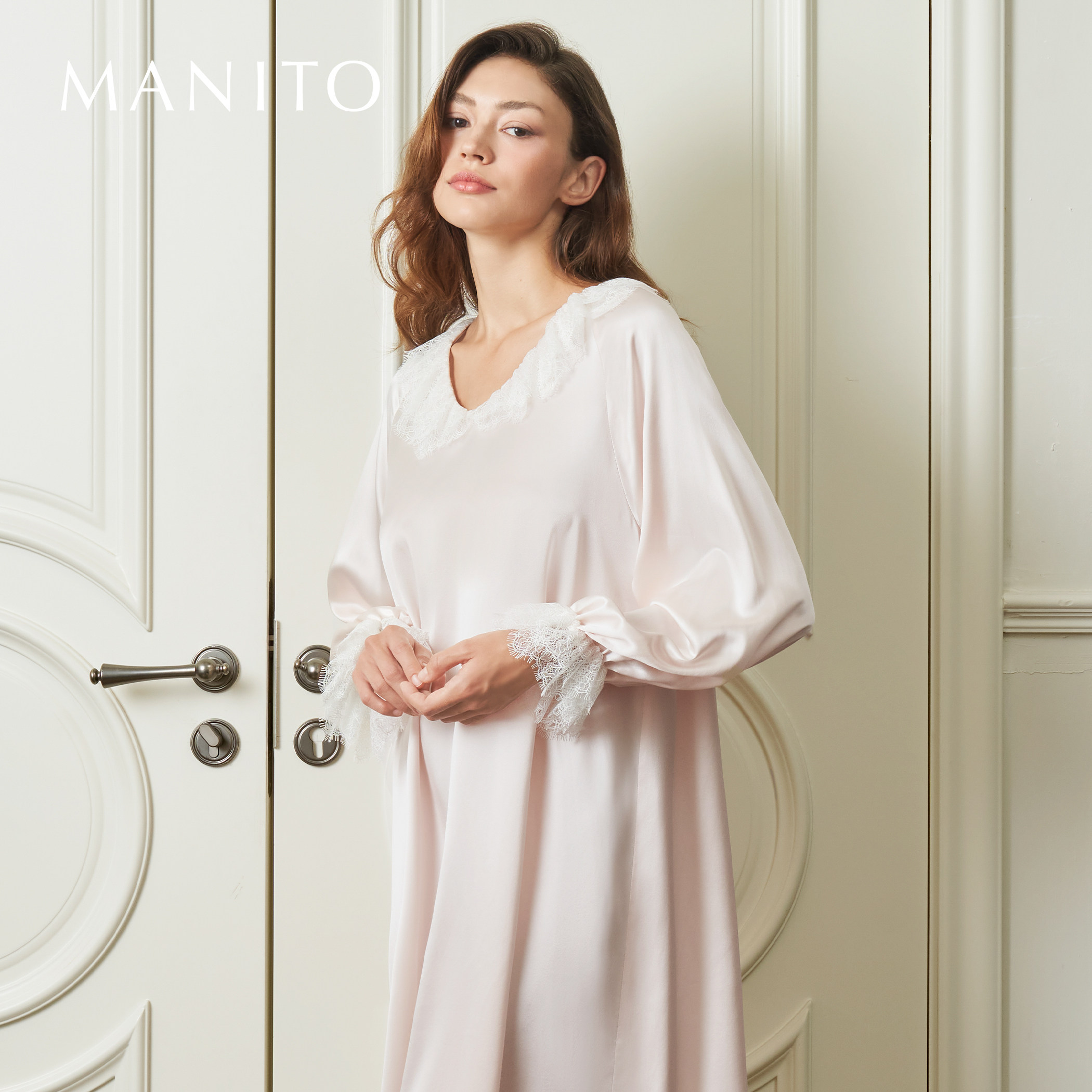 MANITO/曼尼陀Court蕾丝连衣裙双层蕾丝领22姆米桑蚕丝睡裙A字裙