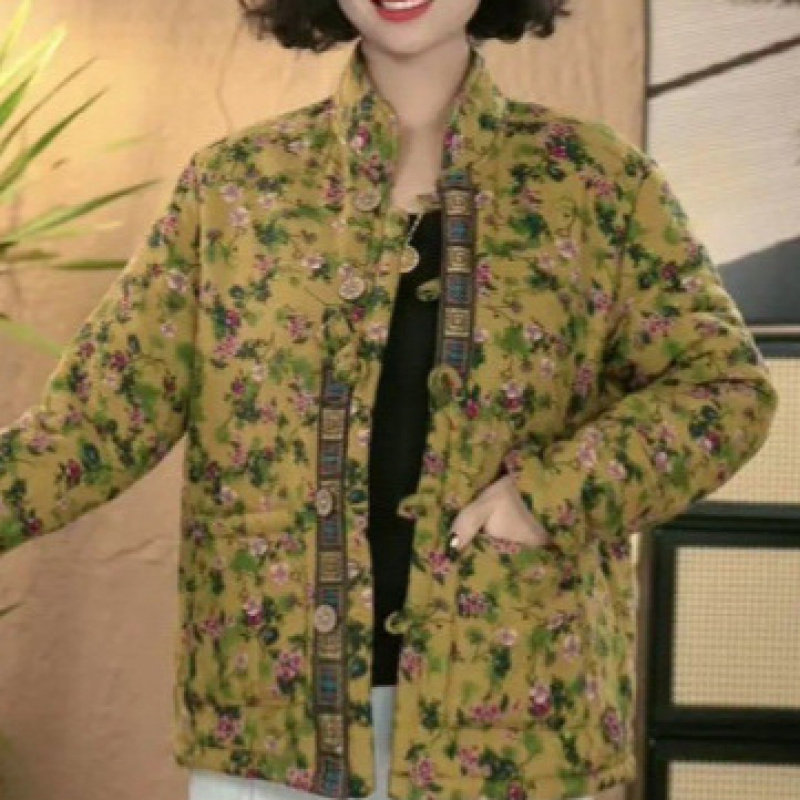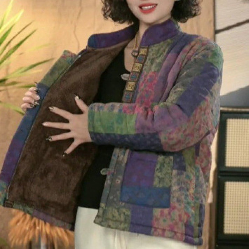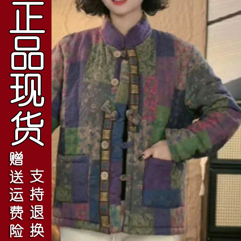 24P正版精选爆发妈妈冬季新款百搭休闲气质加绒加厚复古棉衣女装