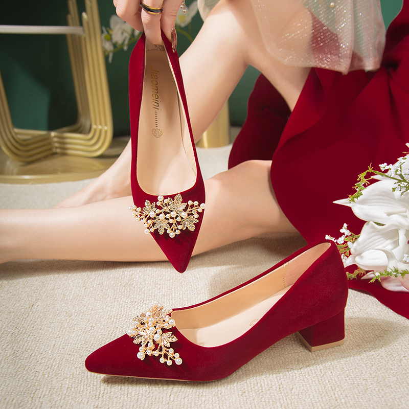 红色结婚鞋女秀禾服两穿高跟新娘鞋2025年新款孕妇粗跟中式敬酒鞋
