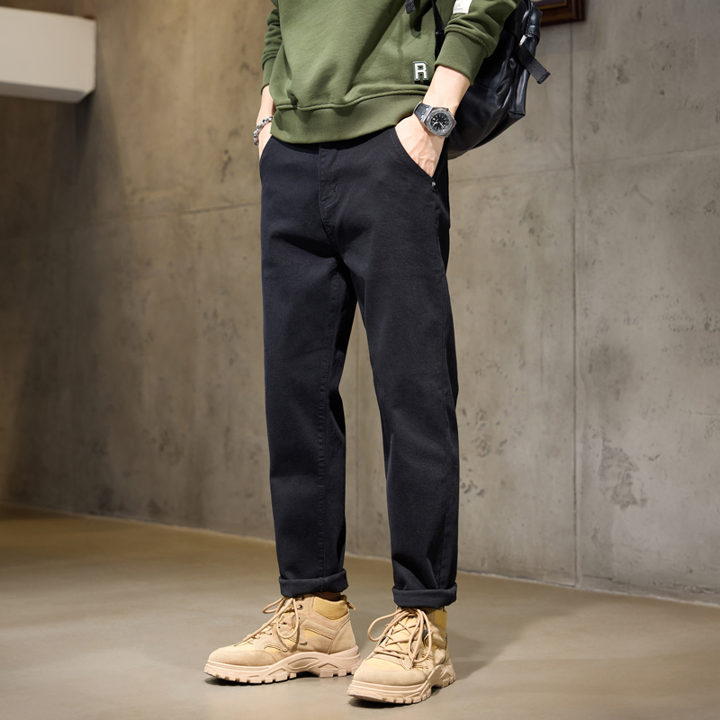 秋冬季黑色牛仔裤男士直筒宽松九分哈伦休闲长裤子2025春秋新款潮