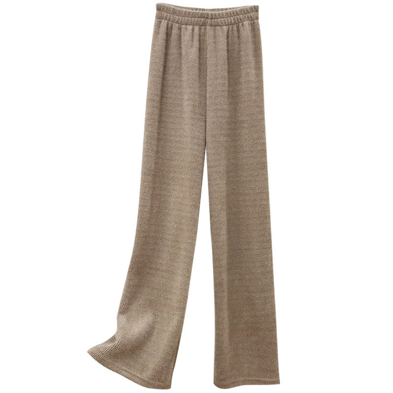 145cm小个子超柔加厚仿水貂绒针织阔腿裤女纯色直筒休闲长裤子150