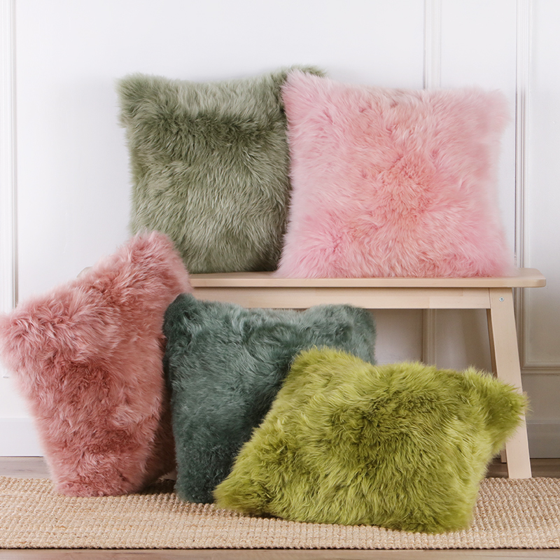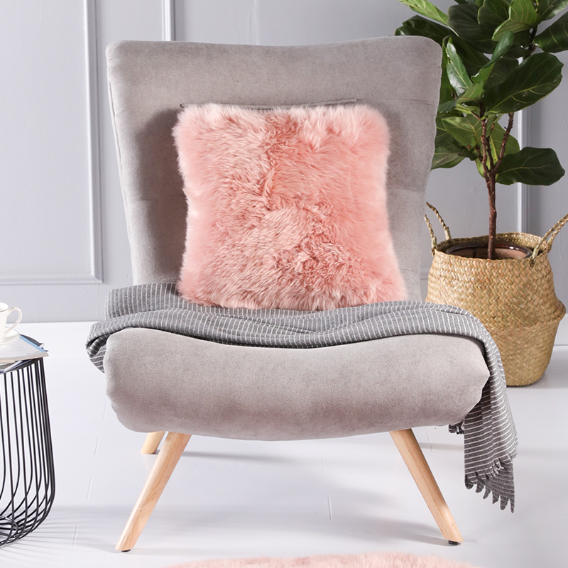 粉色羊毛网红抱枕北欧彩色沙发靠垫现代轻奢纯色糖果色少女毛靠枕