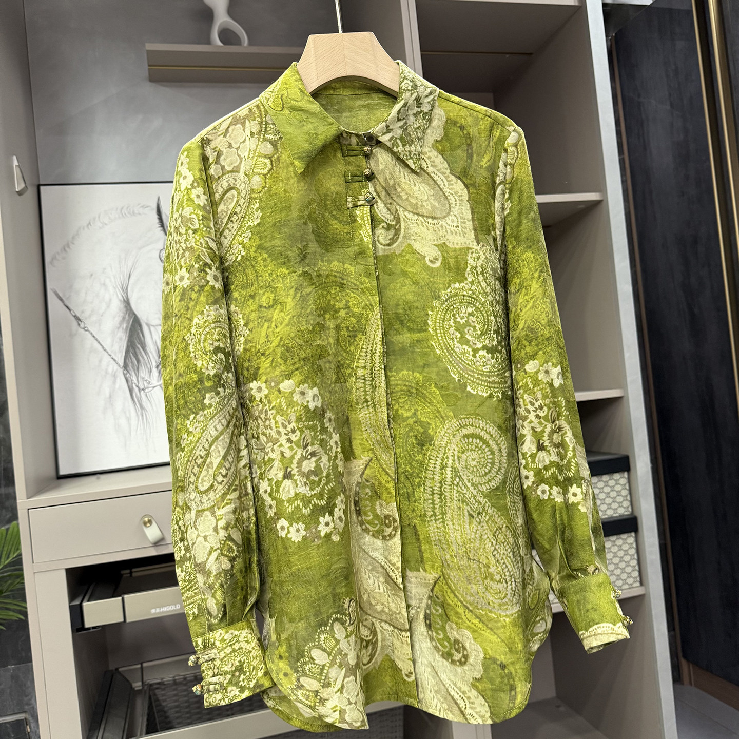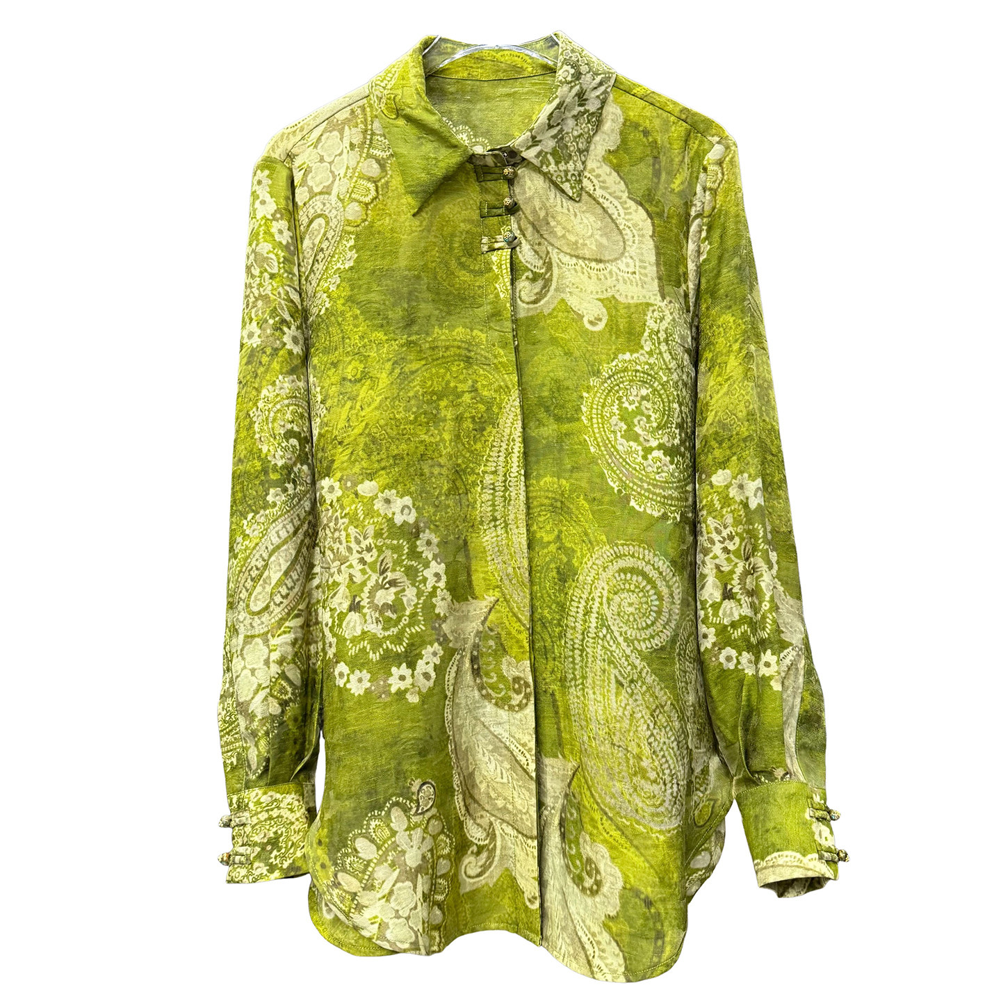 中式!宽松提花天丝麻盘扣衬衫