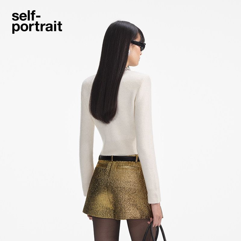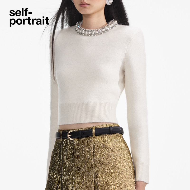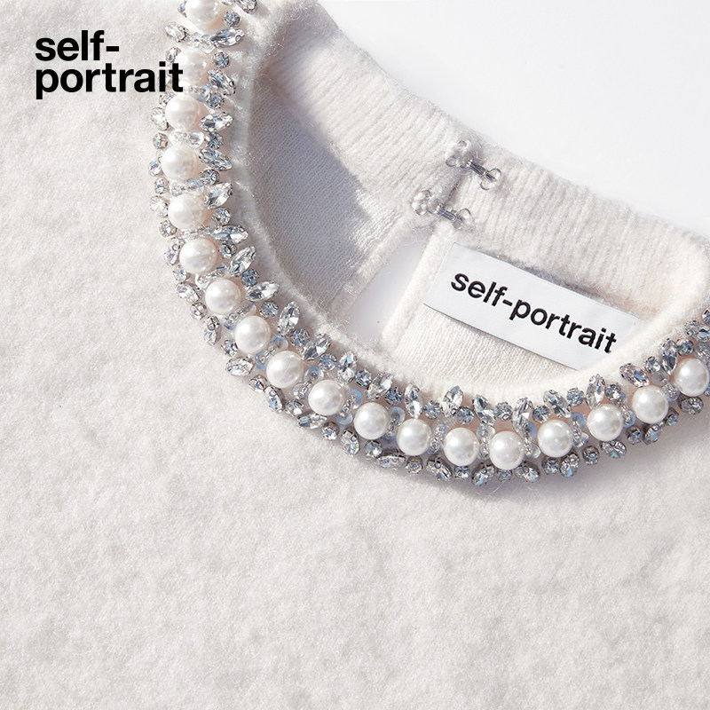 self-portrait 2025早春象牙白钻饰圆领针织毛衫上衣