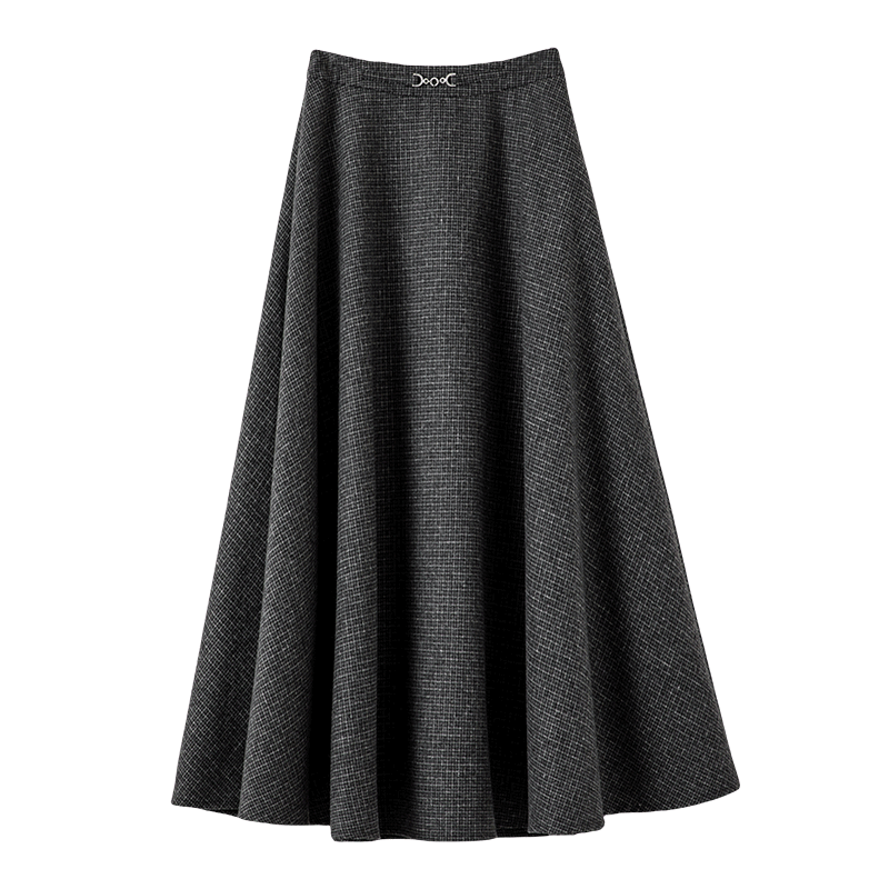 晚白2025年秋新款简约半裙休闲千鸟格羊毛呢大摆A字半身裙