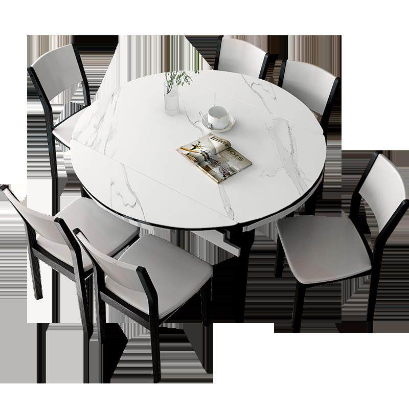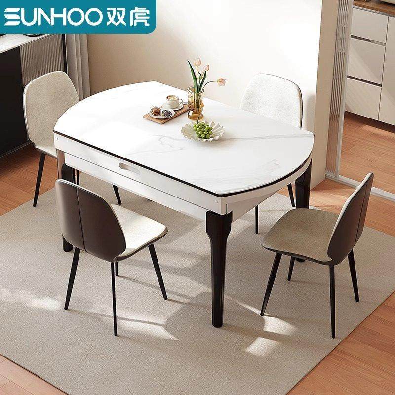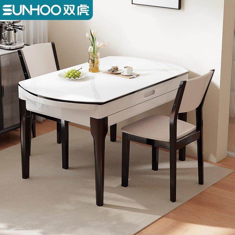 双虎圆形餐桌可伸缩小户型家用可变圆桌岩板现代简约轻奢桌椅208
