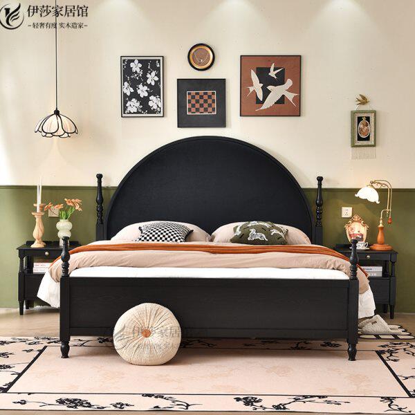 雕花中主卧双人床婚床法式复古罗马柱大小户型古风实木床白蜡木