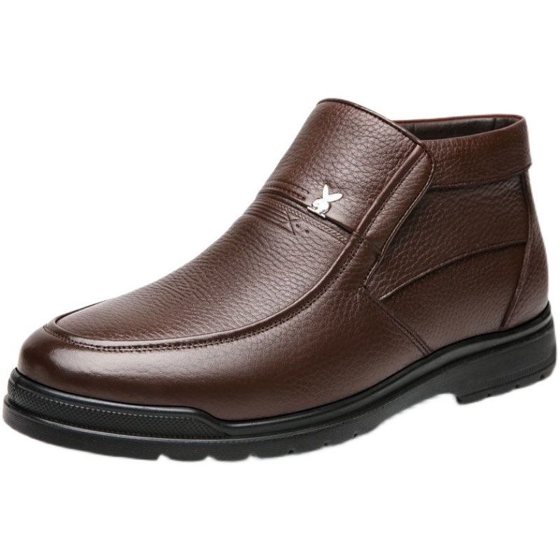 【真皮羊毛】冬季加绒加厚保暖棉鞋中高帮男鞋休闲鞋中老年爸爸鞋