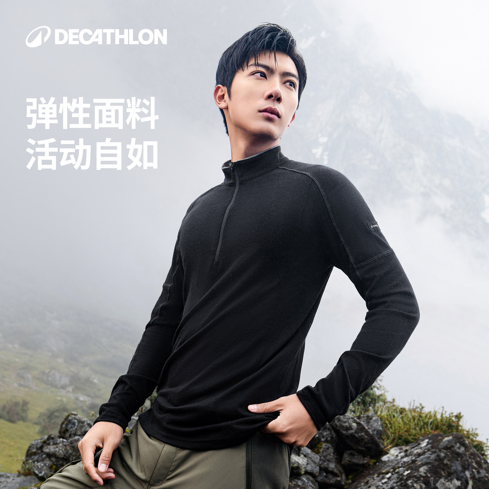 迪卡侬官方户外美利奴羊毛速干T恤男运动服滑雪登山长袖内衣ODF