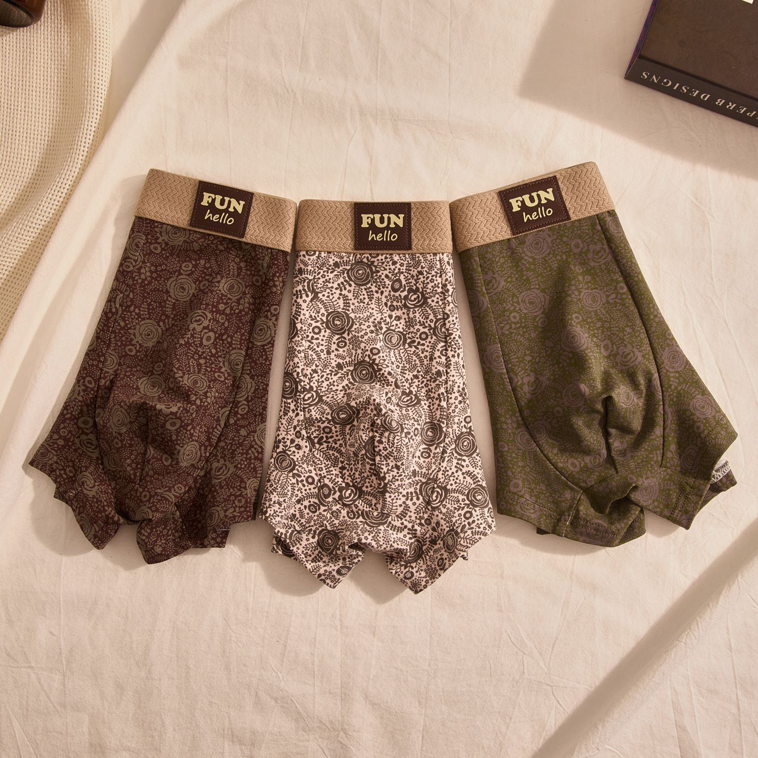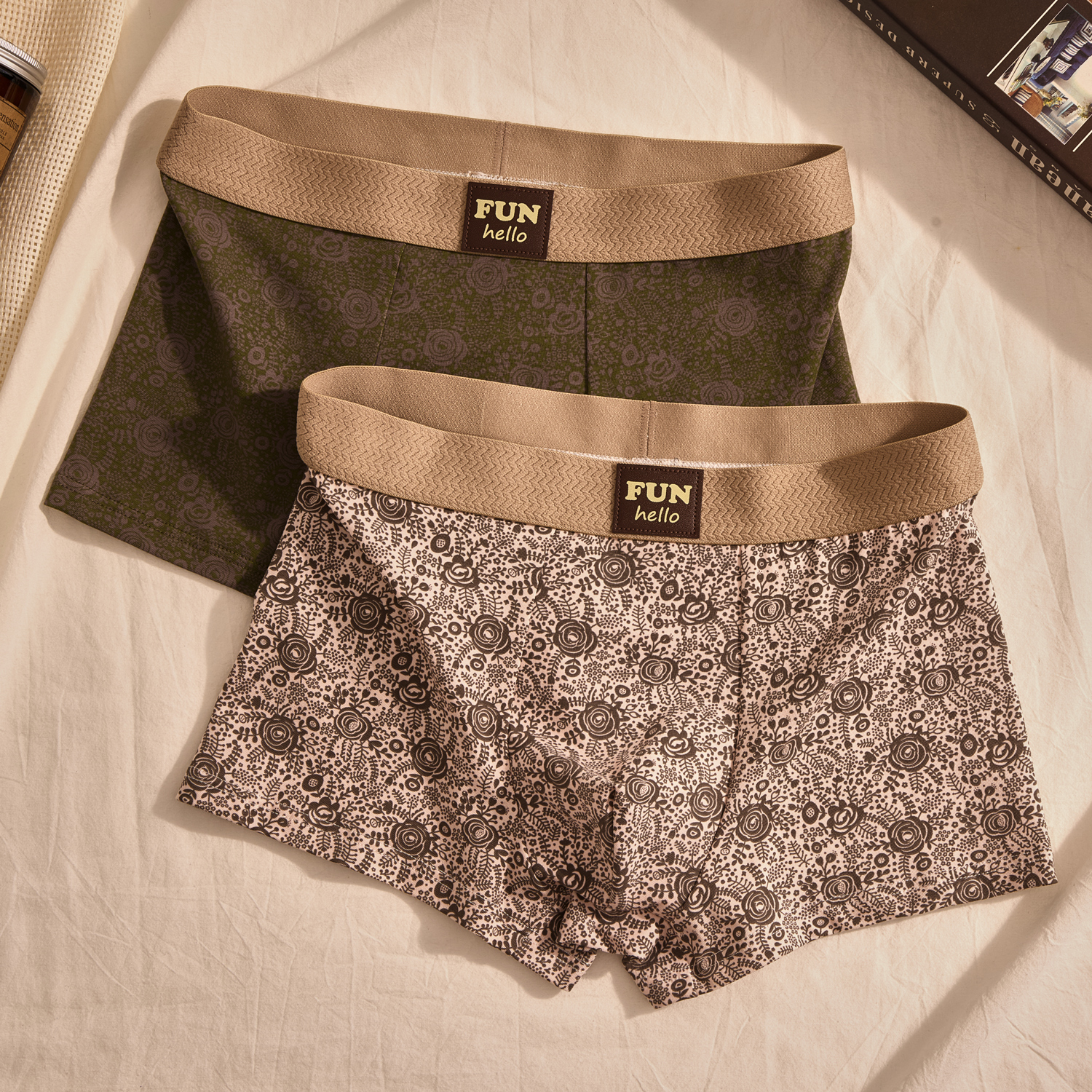 古典花印男士内裤纯棉平角裤男生新款个性潮流青年舒适透气四角裤
