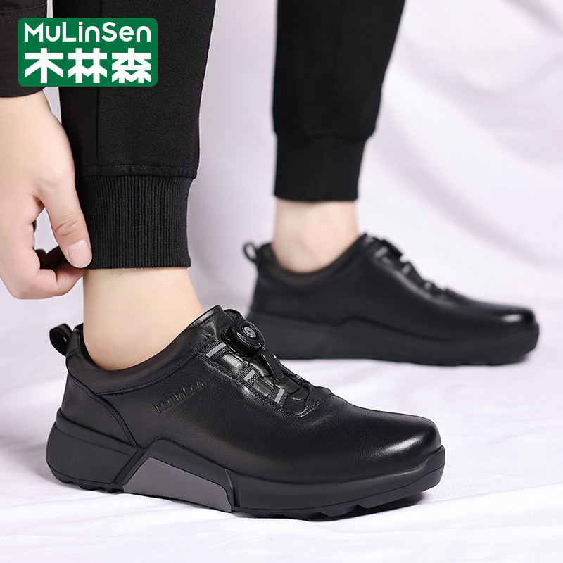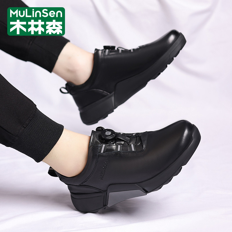 木林森冬季男鞋2025年新款运动休闲商务英伦软底老爹男款旋钮皮鞋