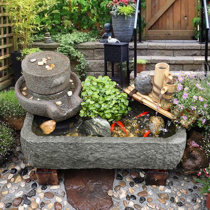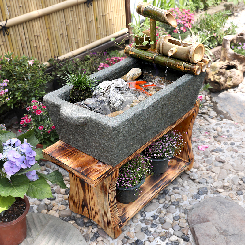 中式庭院水池景观阳台小院鱼池假山流水喷泉花园布置装饰造景摆件