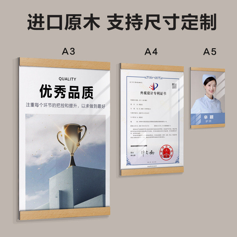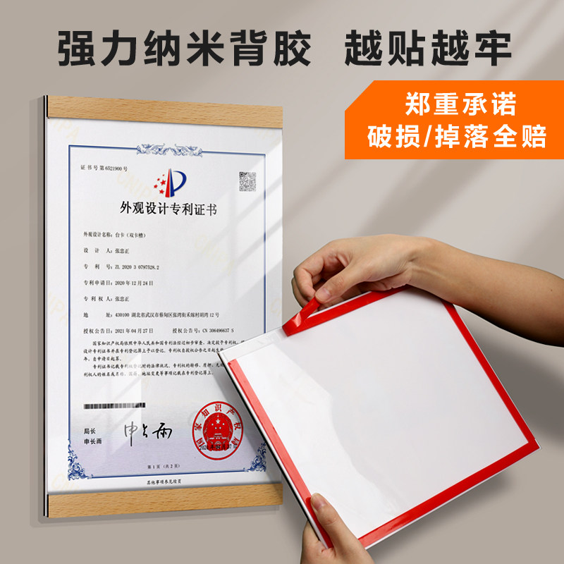 专利证书框架挂墙亚克力相框奖状荣誉墙a4展示框实木执照框免打孔