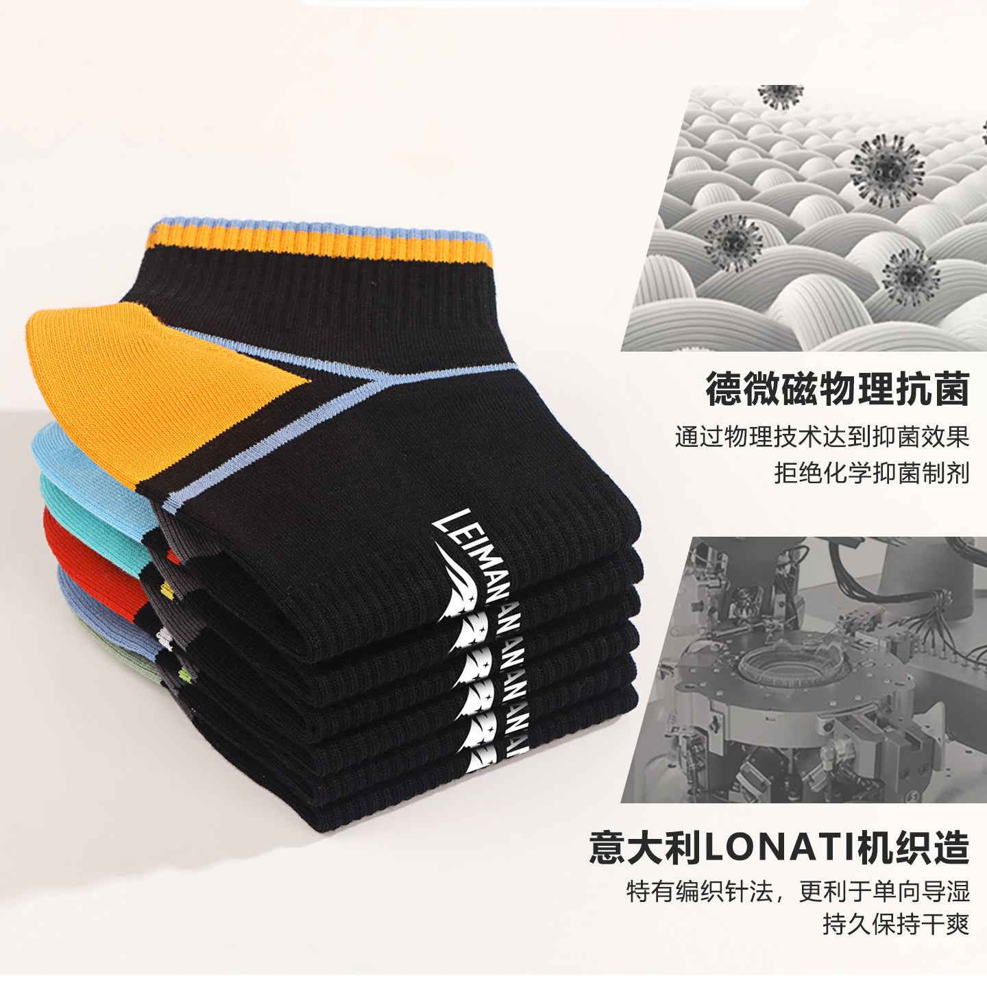 雷曼哲艾草抗菌纤维棉袜子男中筒袜短袜防臭吸汗黑色商务袜秋冬季