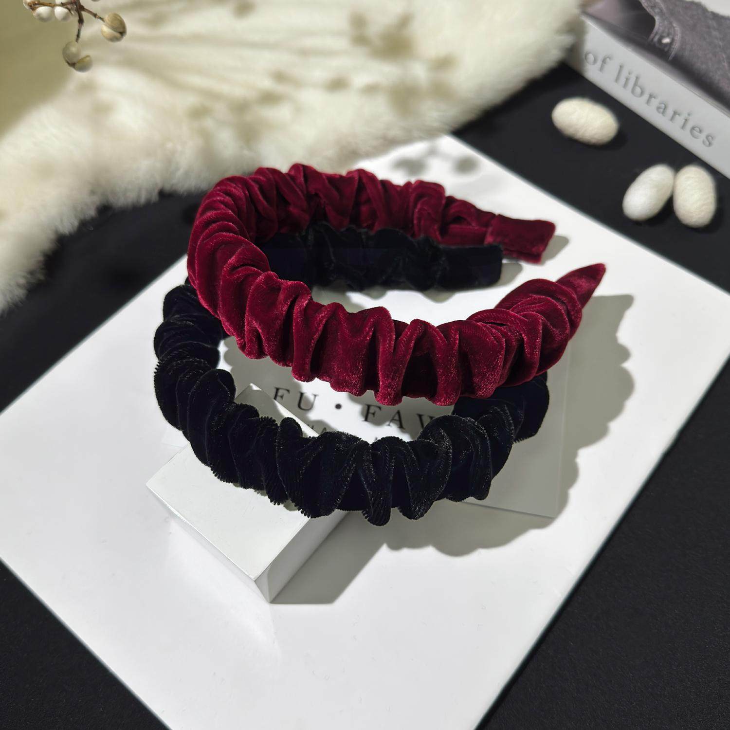 【3件8折】真丝丝绒发箍女褶皱宽边发卡高颅顶气质百搭高级感头箍