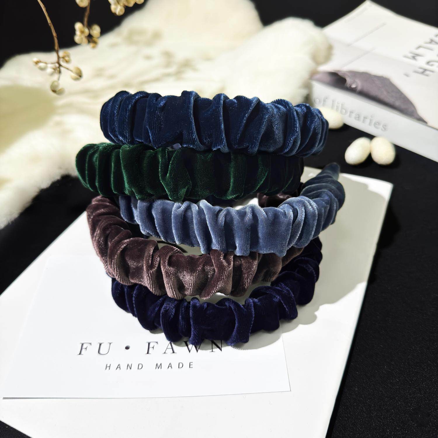 真丝丝绒发箍桑蚕丝绒褶皱高颅顶