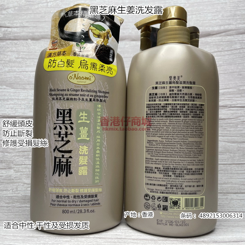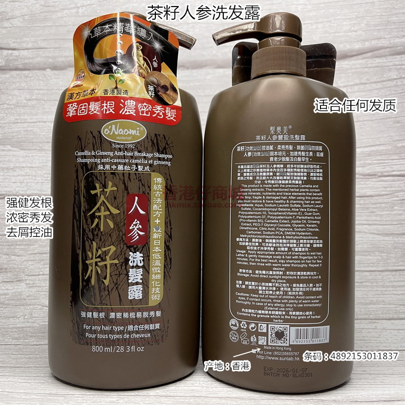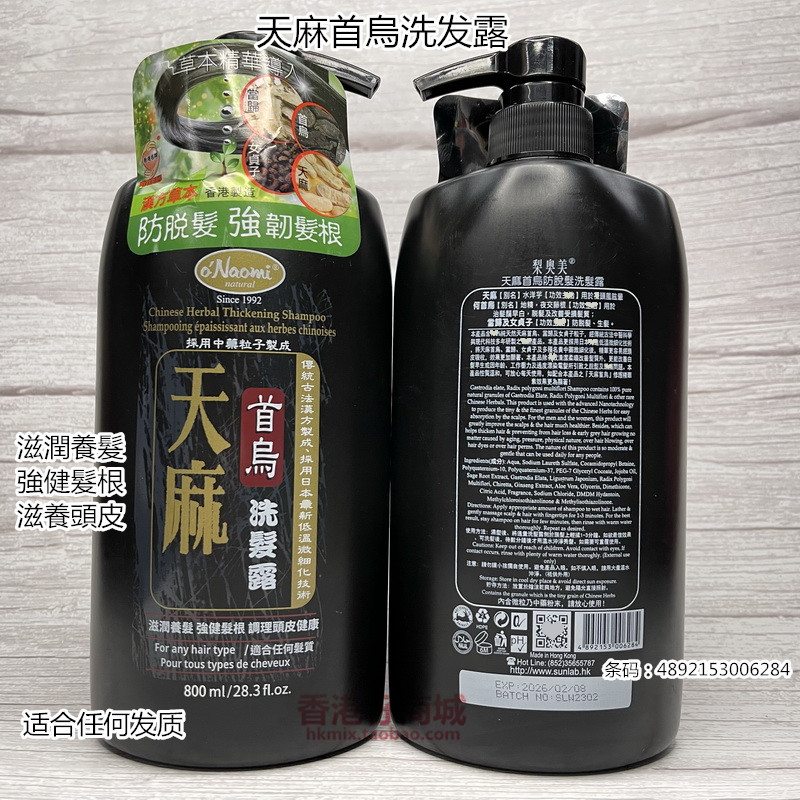 香港进口梨奥美洗发水800ml天麻首乌茶籽人参黑芝麻粒子