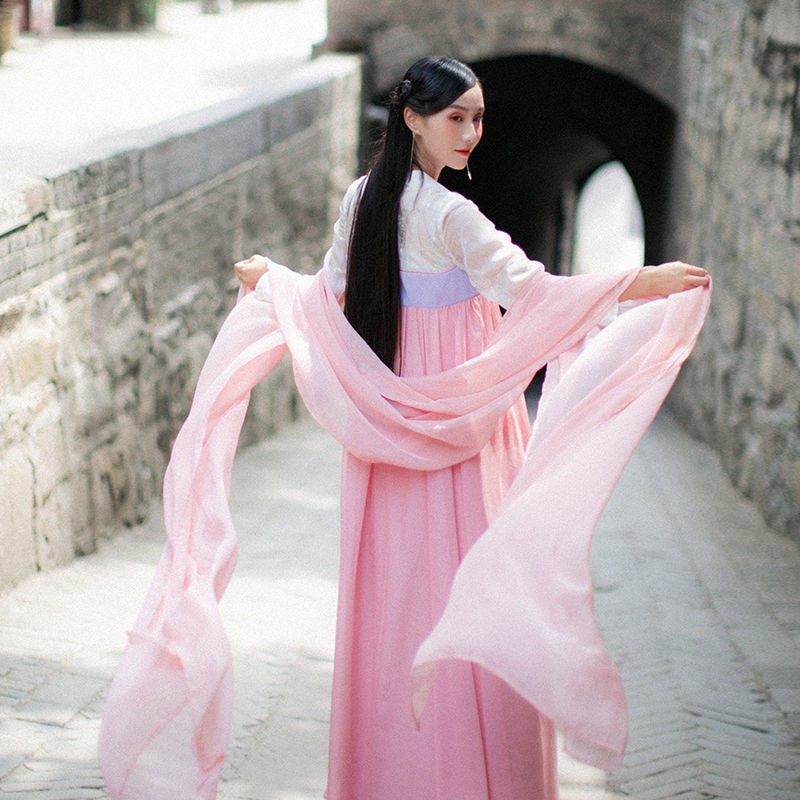 汉服雪纺披帛古装披巾粉白色舞蹈纯色仙女飘逸古典百搭披肩长飘带
