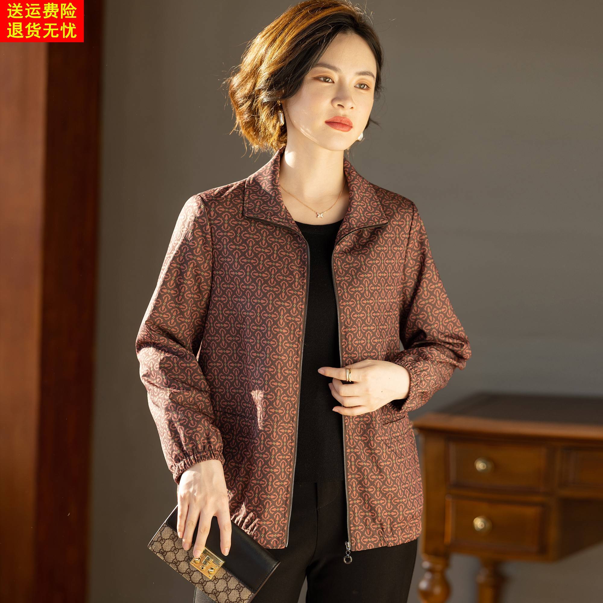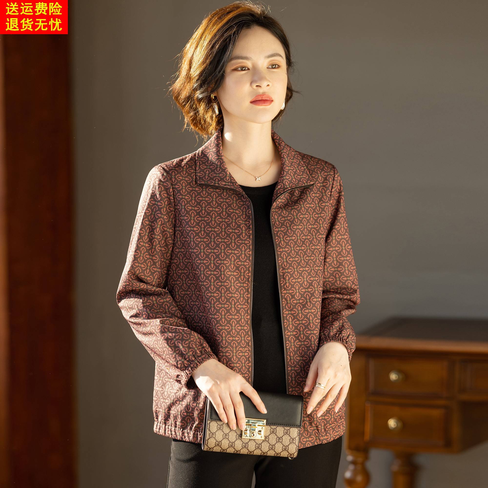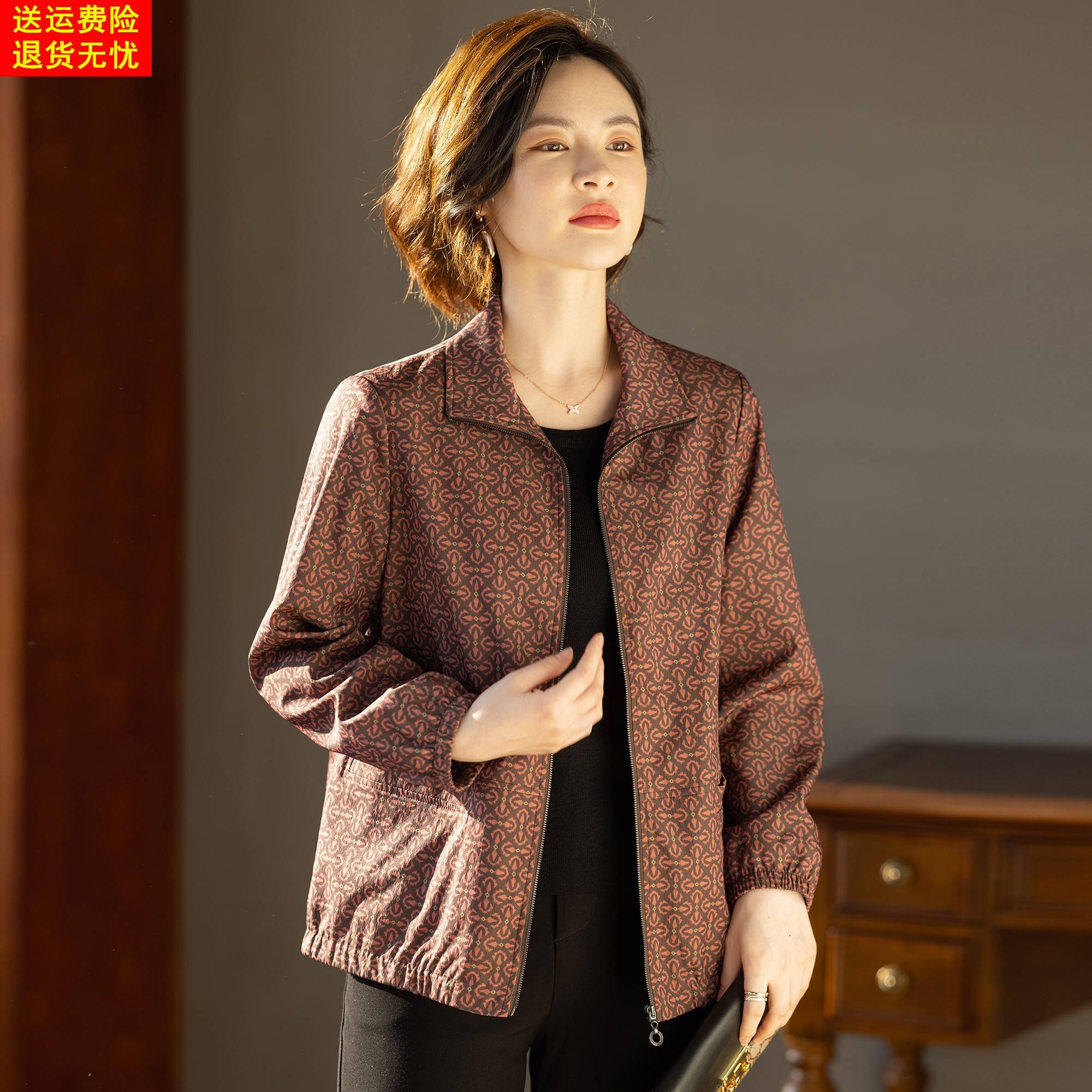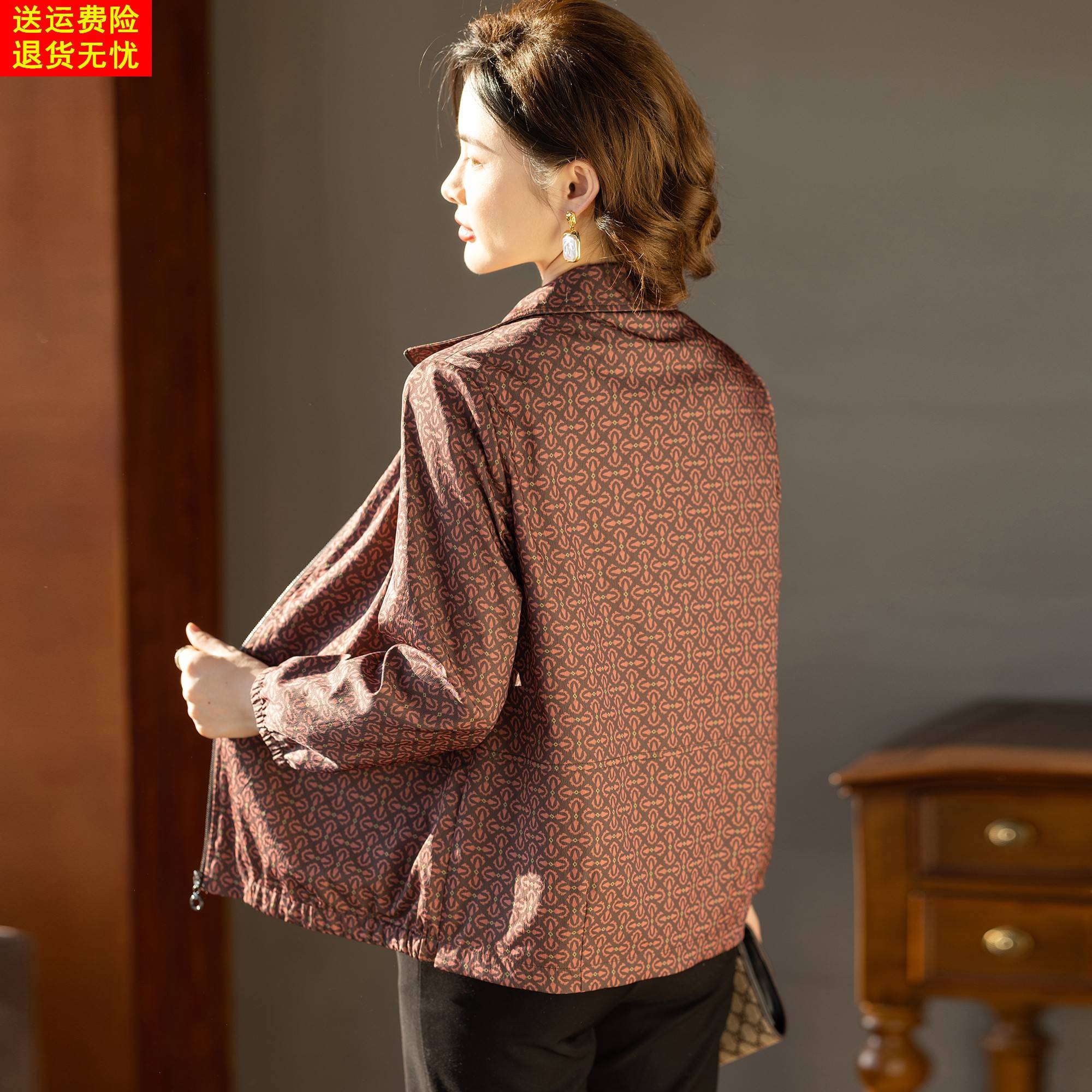 妈妈秋装风衣外套夹克衫洋气时尚宽松春秋上衣服中老年女2025新款