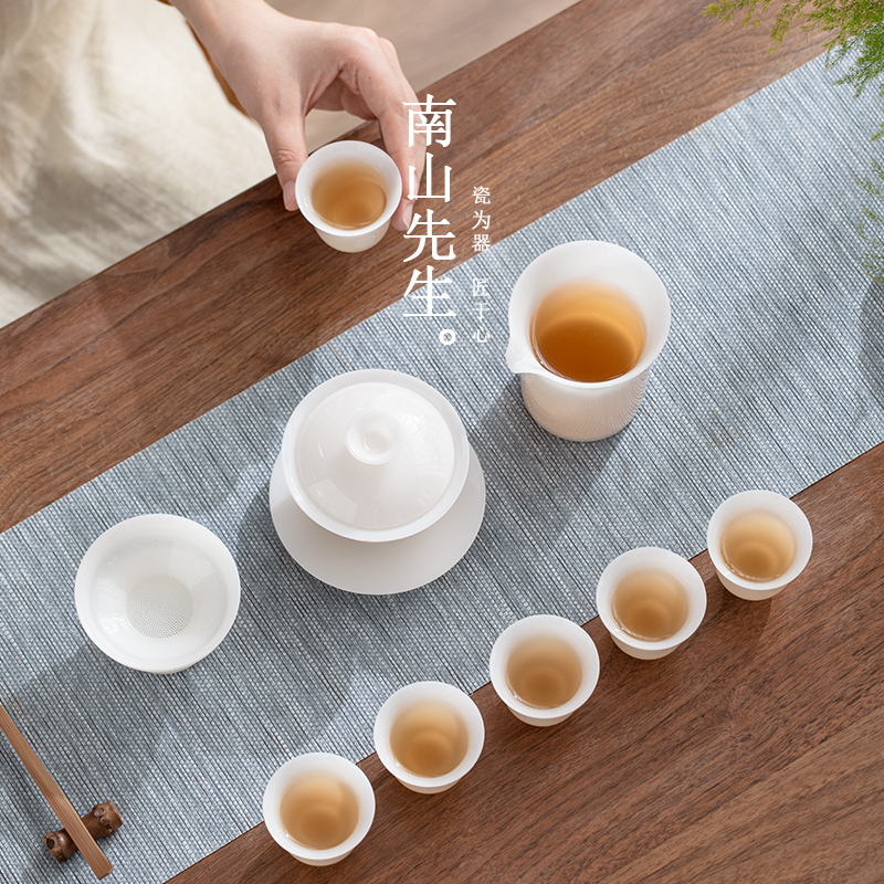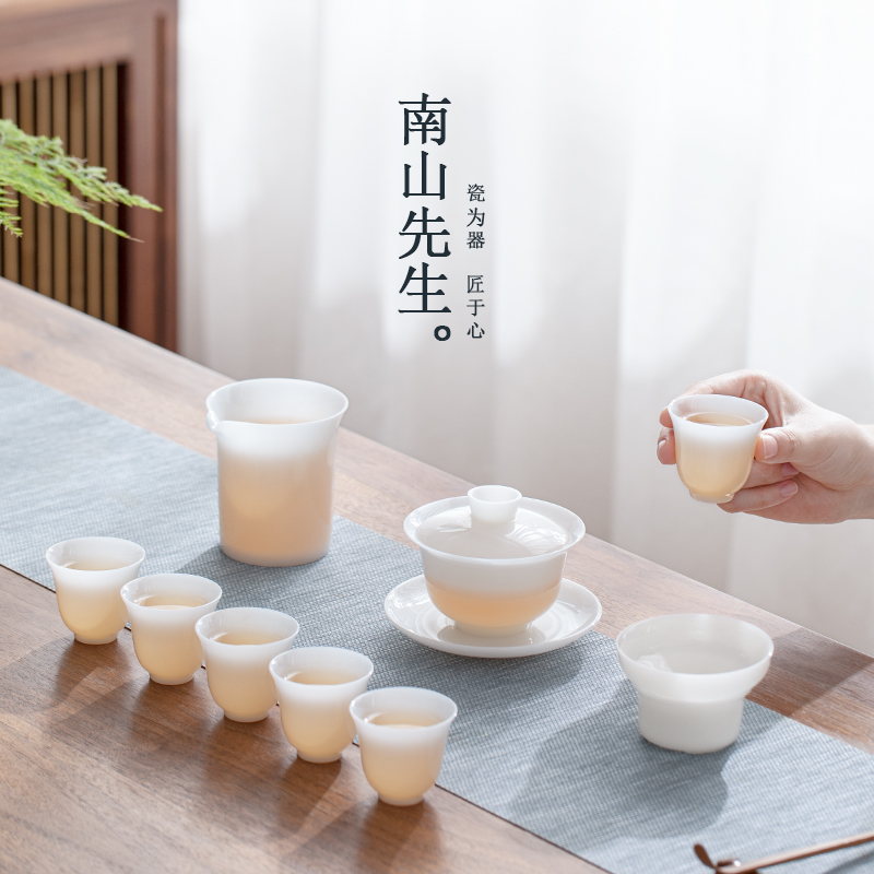 南山先生瑶光盖碗九件套冰种玉瓷家用轻奢高档功夫茶具套装礼盒装