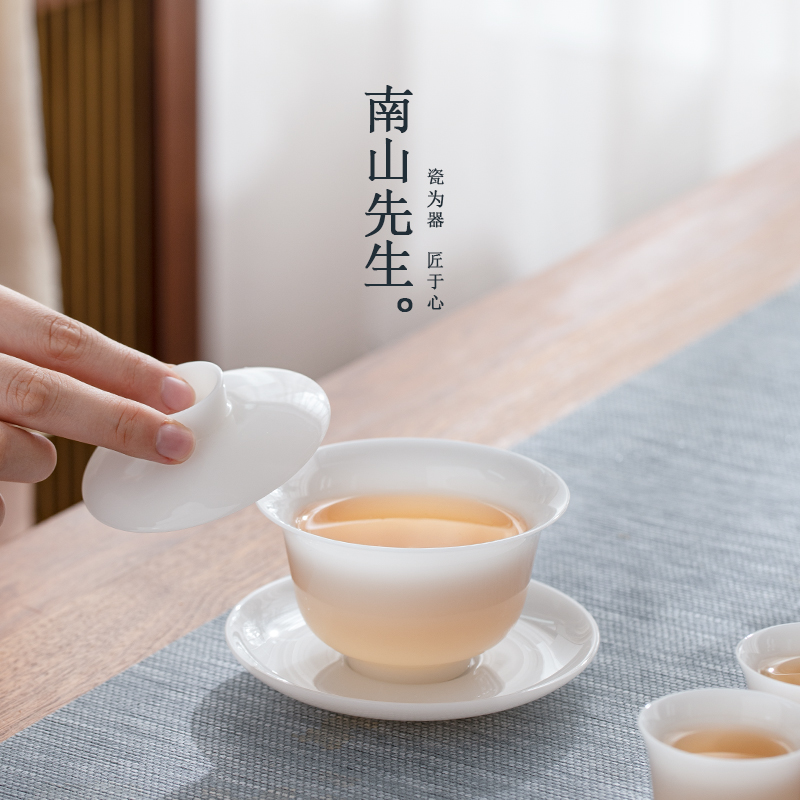 南山先生冰种玉瓷瑶光盖碗九件套