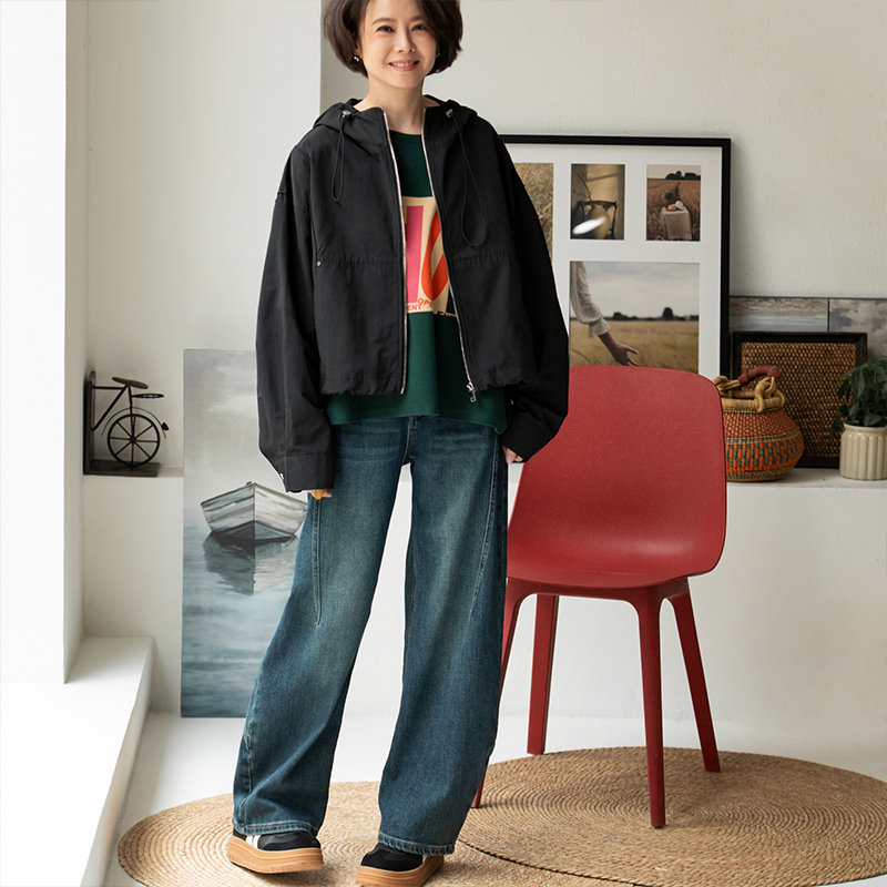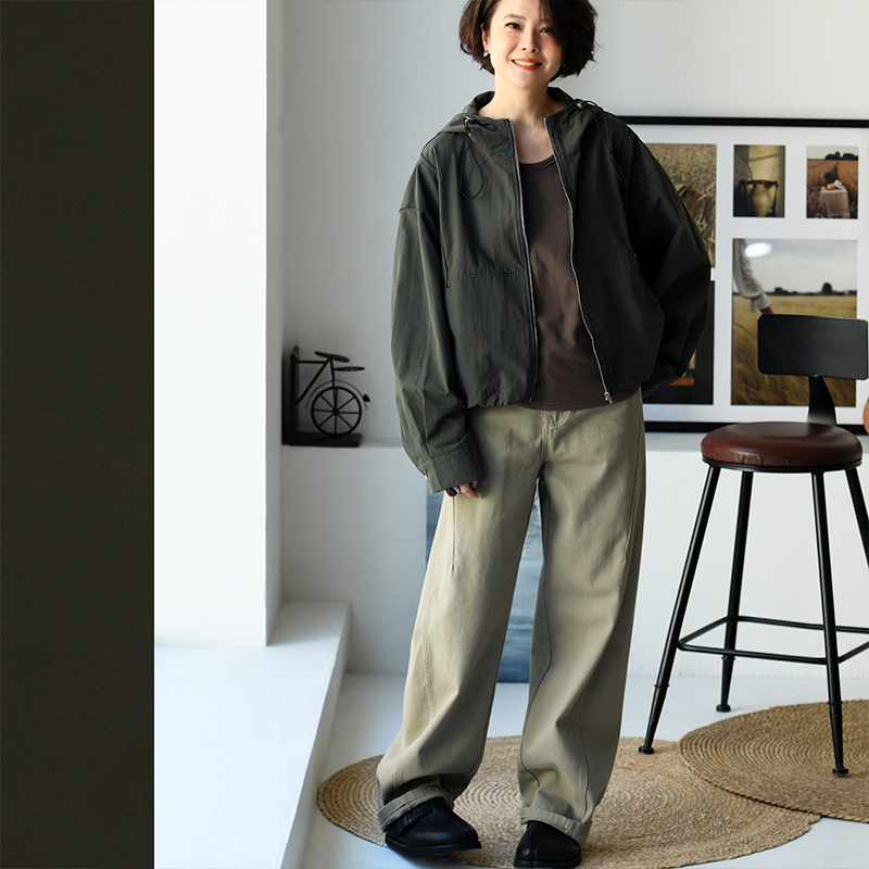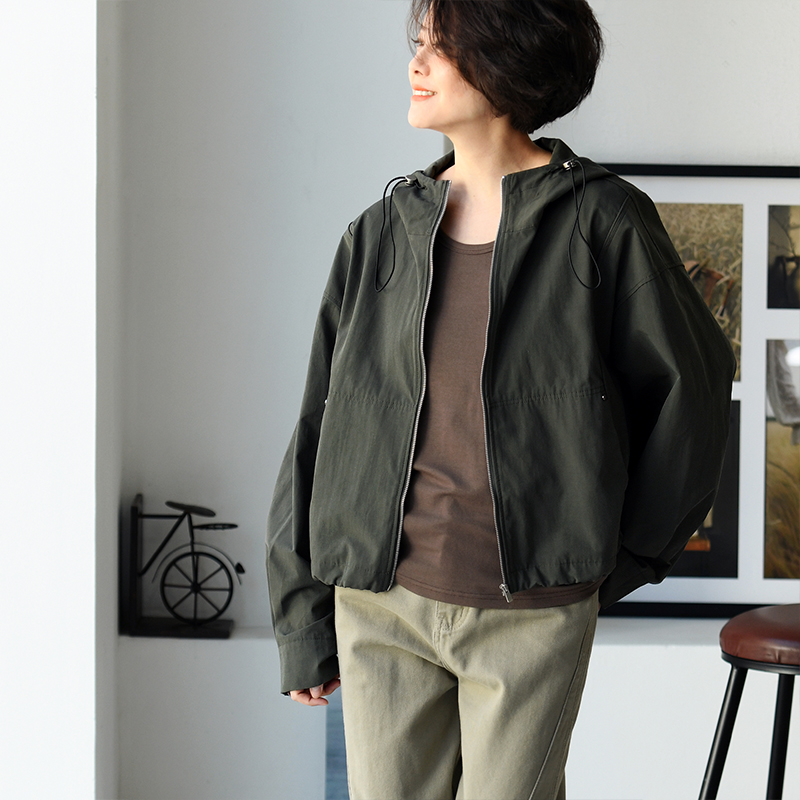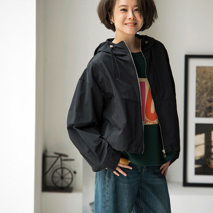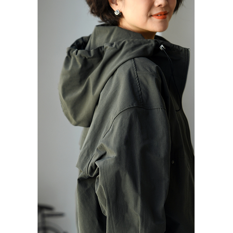 W51199 休闲百搭连帽拉链宽松抽褶前短后长短款外套女秋 米兰宣言