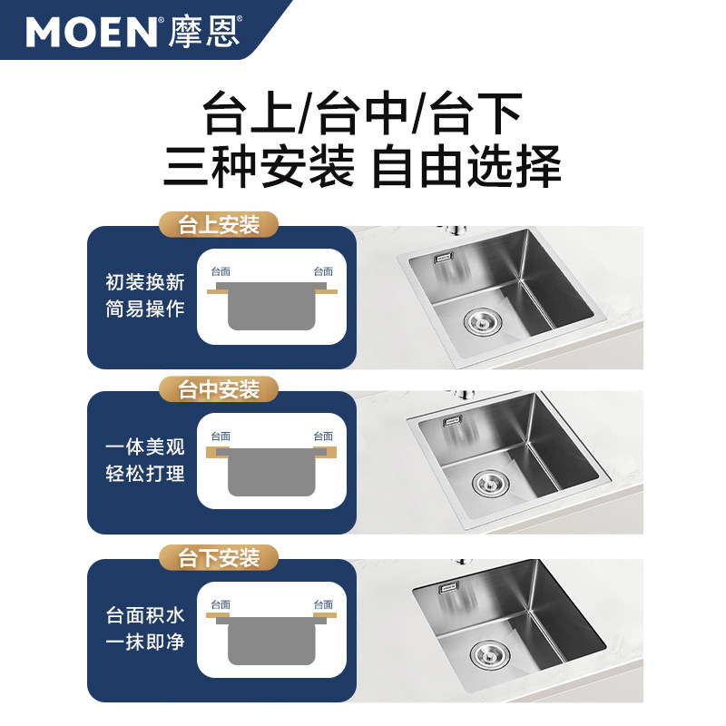 摩恩手工大单槽厨房洗菜盆洗碗池台下盆洗菜盆水槽27533