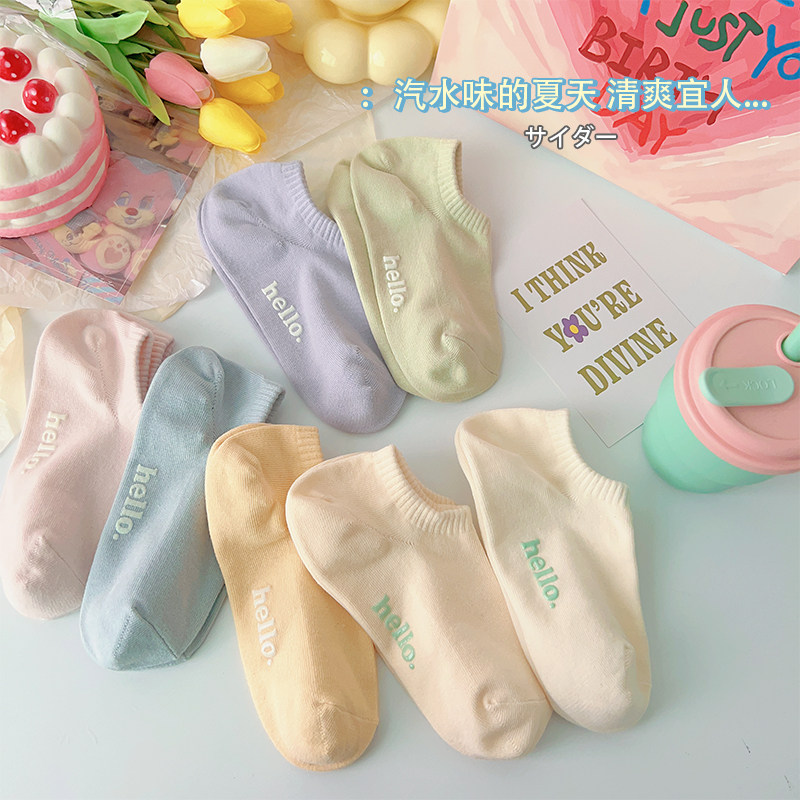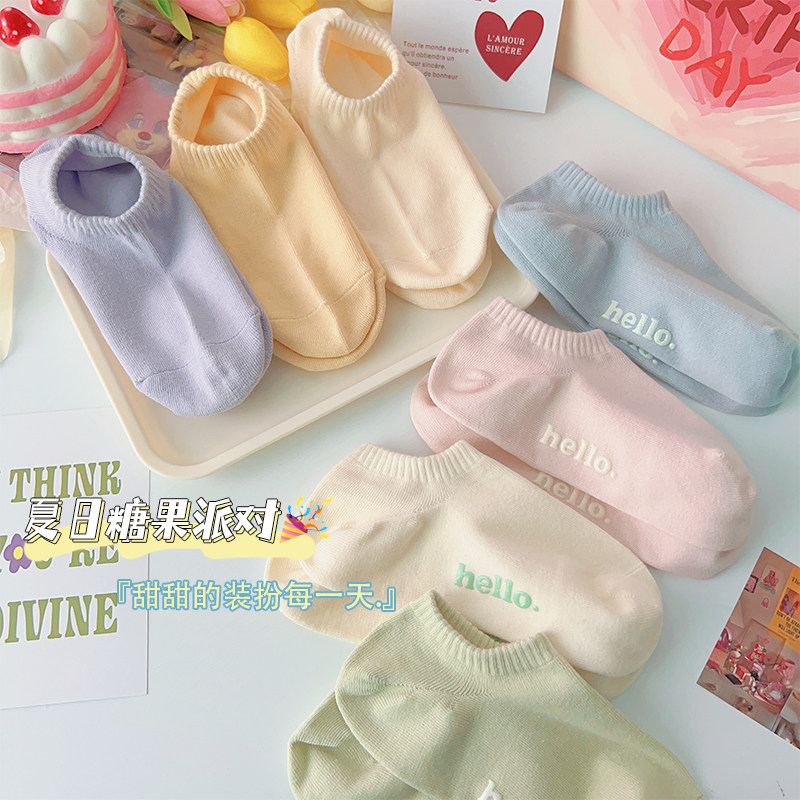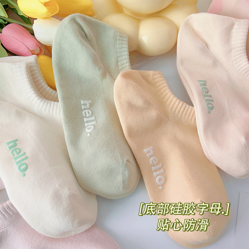 彩色袜子女船袜防滑不掉跟浅口春夏季薄款纯棉短袜网红夏天隐形袜