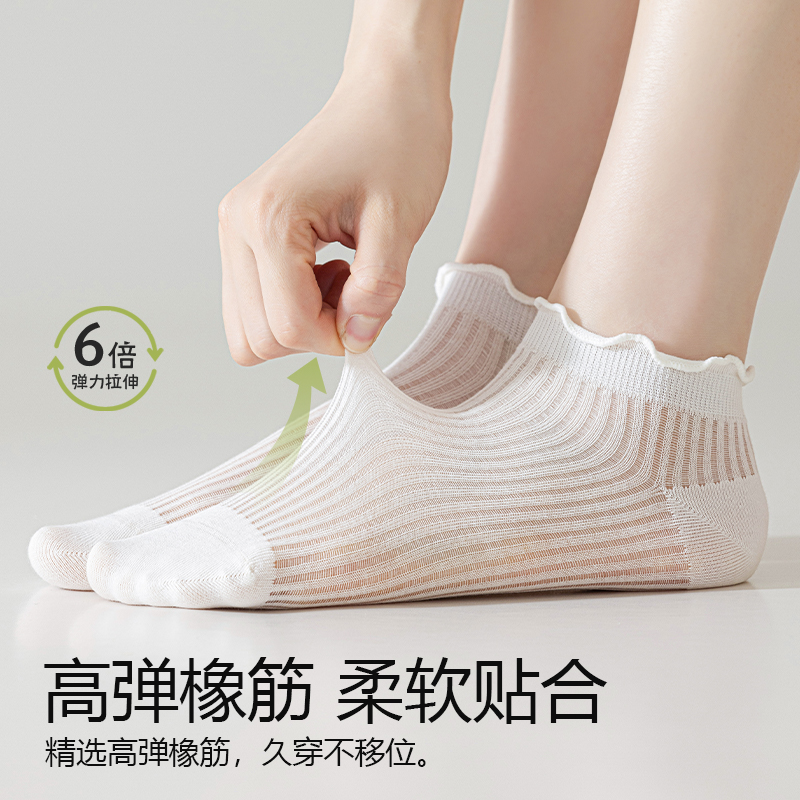 木耳边袜子女夏季薄款短袜纯棉防臭网眼透气可爱风浅口无骨中筒袜