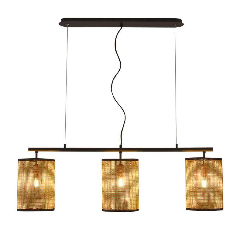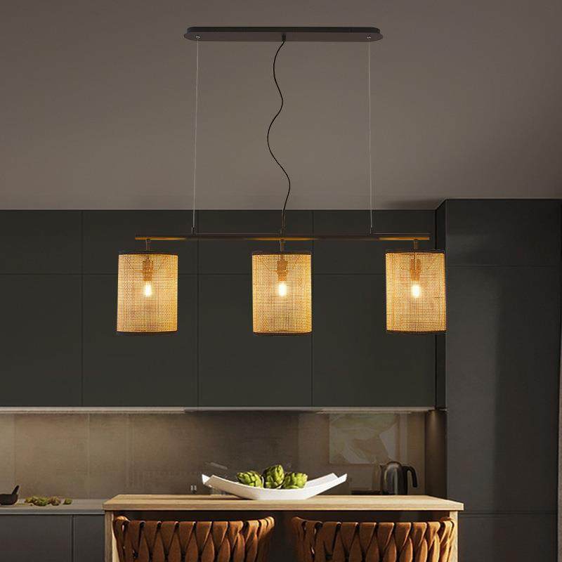 新中式禅意茶室吊灯创意个性餐厅民宿吧台三头装饰竹编藤艺吊灯