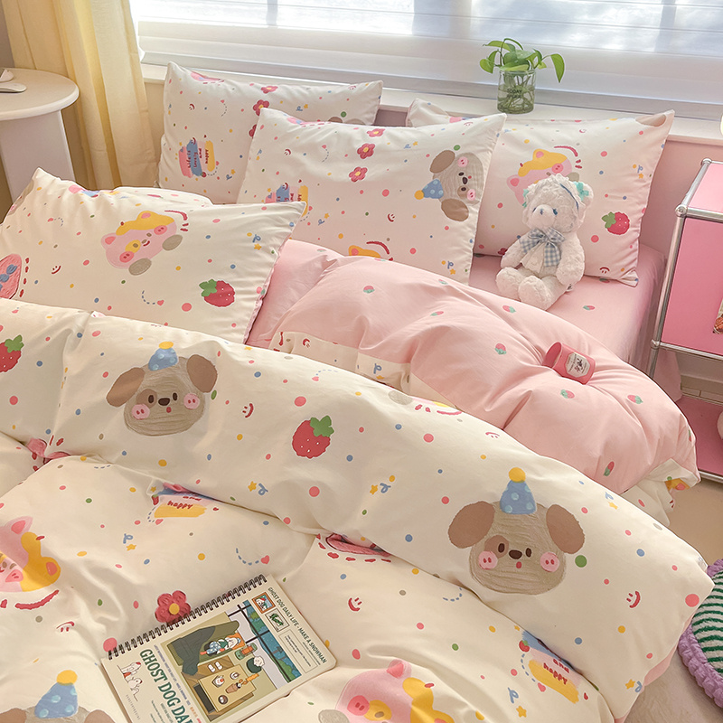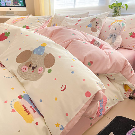 卡通床上四件套纯棉100全棉儿童床品可爱学生宿舍床单被套三件套4