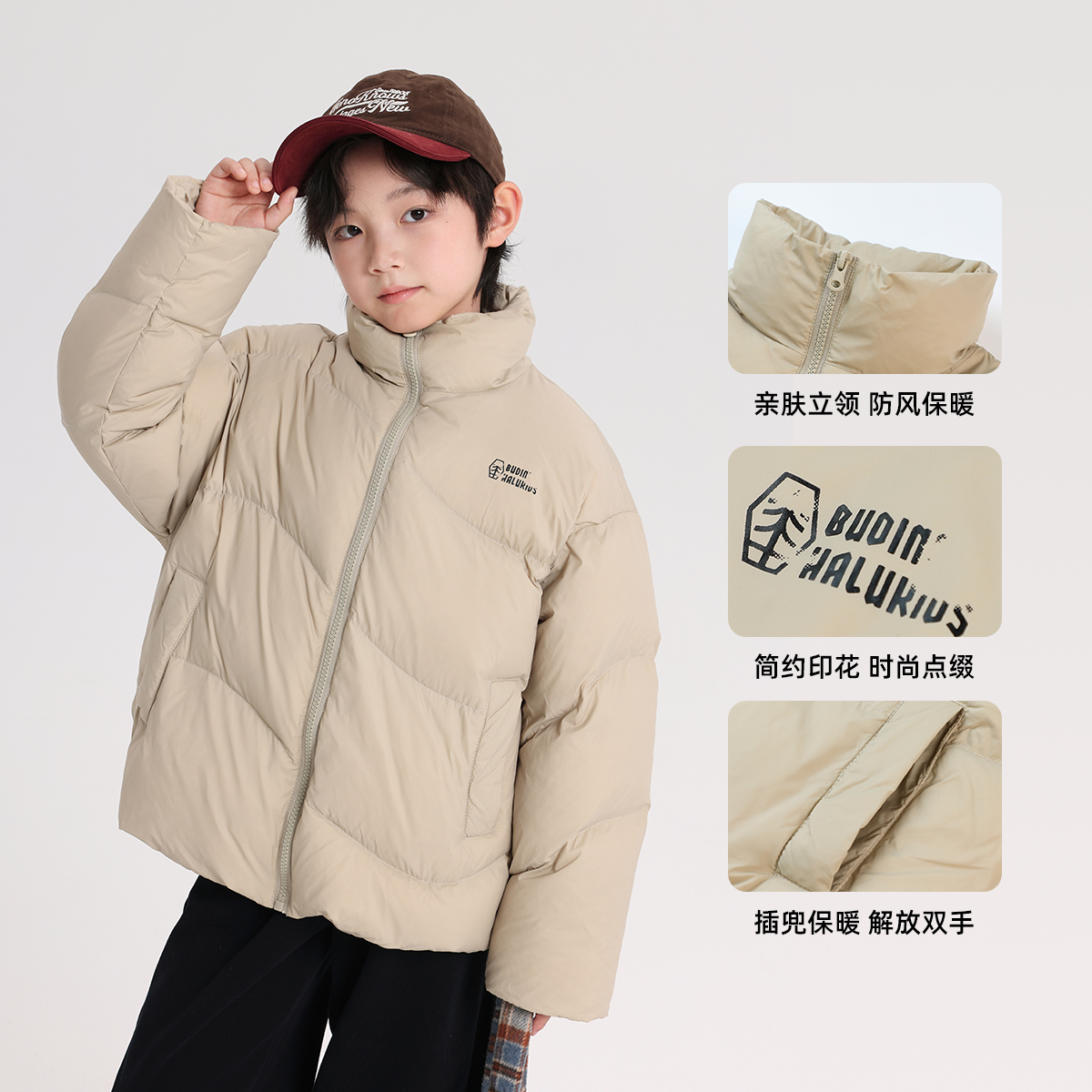 布丁哈鲁童装冬装男童上衣2025秋冬新款儿童立领抗风棉服外套