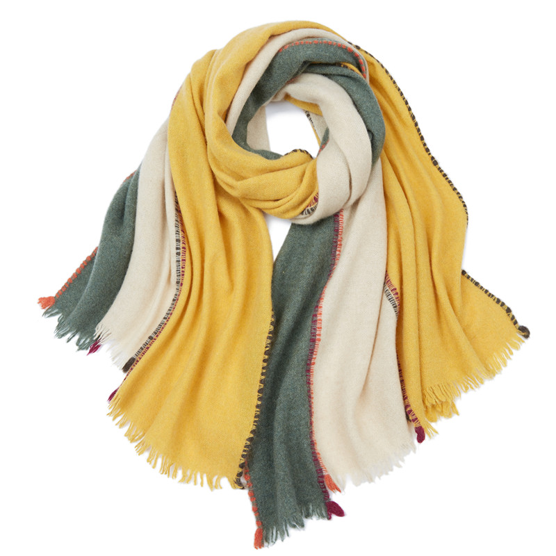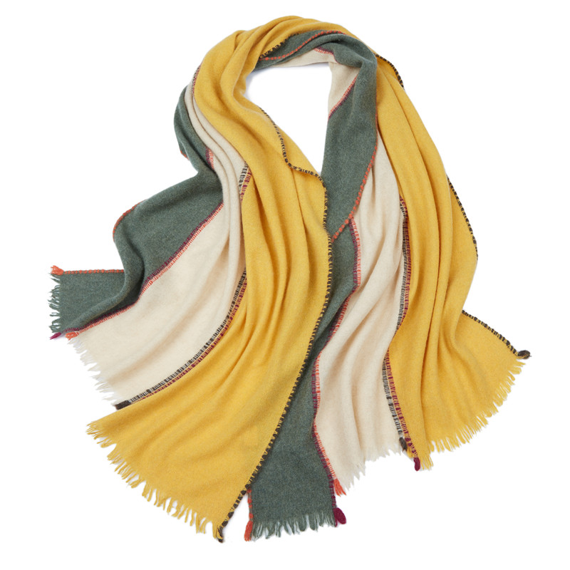 欧美设计师轻缩绒色织拼色保暖中厚款羊绒围巾披肩两用冬季