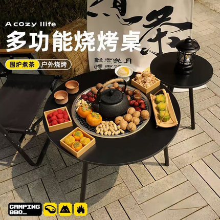 户外烧烤炉便捷折叠烧烤桌子烤肉野外庭院围炉煮茶桌野餐实木桌子