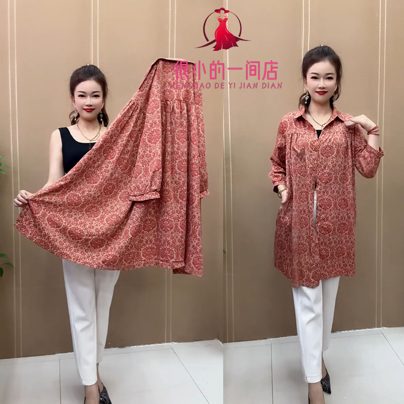 中年妈妈时尚花色风衣外套秋季休闲外搭宽松百搭减龄中长款外套女