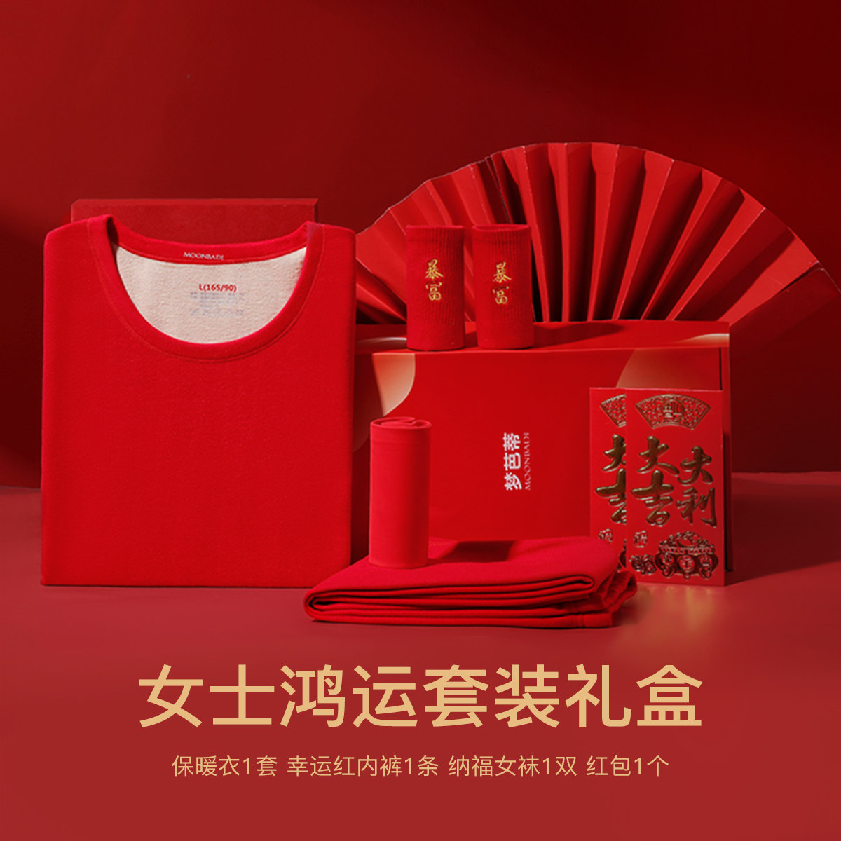 【胡可推荐】梦芭蒂男女士红色保暖内衣套装结婚本命年秋衣裤礼盒