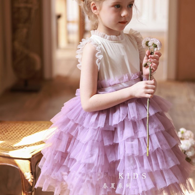 紫色蓬蓬裙生日宴公主裙女童网纱蛋糕裙背心裙连衣裙儿童礼服裙