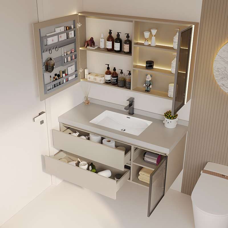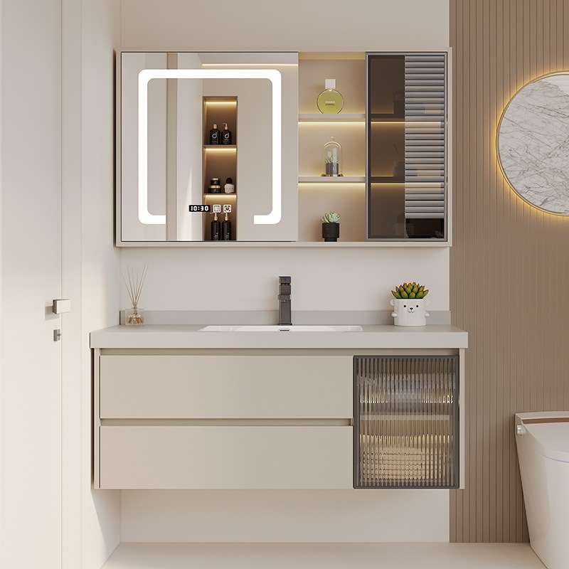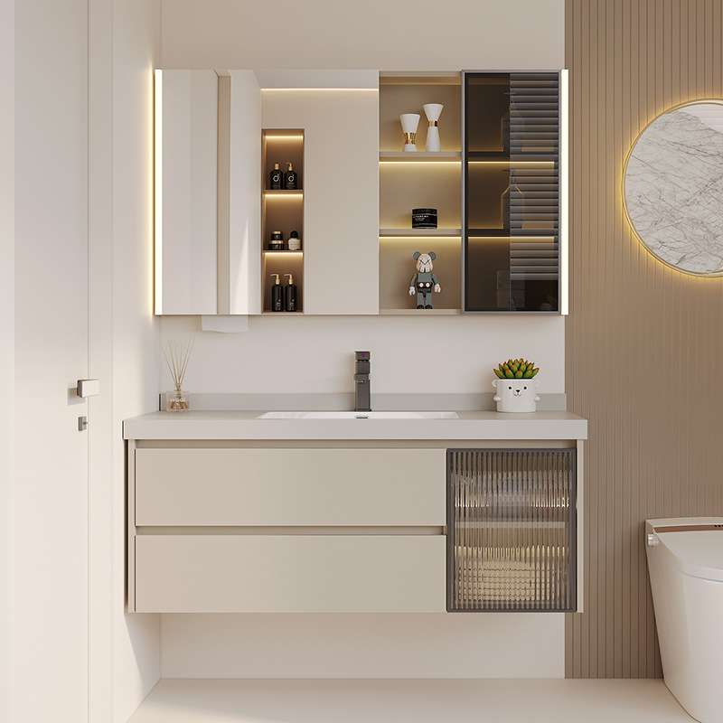 熠达岩板无缝拼接陶瓷盆配美妆镜柜洗手洗脸洗漱台盆柜浴室柜组合