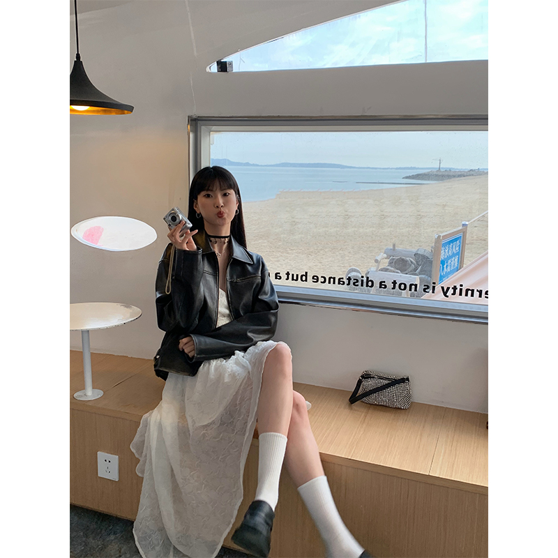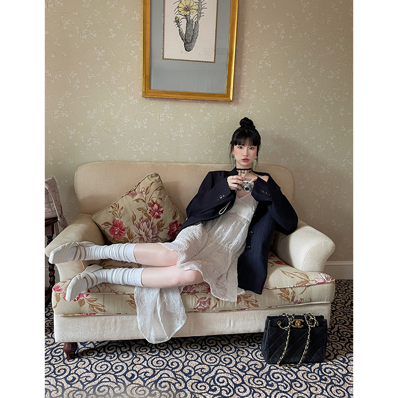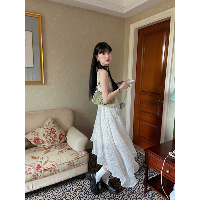 MOWENTI文文婷 法式芭蕾风白色吊带连衣裙女夏季不规则v领鱼尾裙