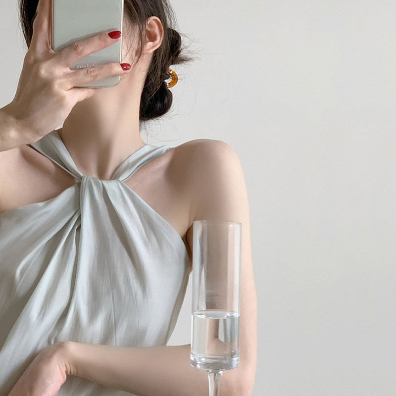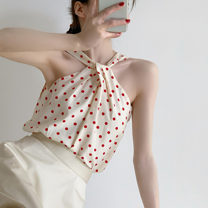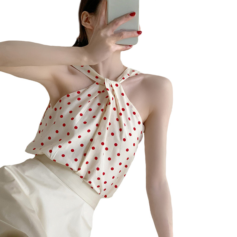 挂脖吊带法式小背心女夏外穿性感露肩温柔设计感小众无袖波点上衣