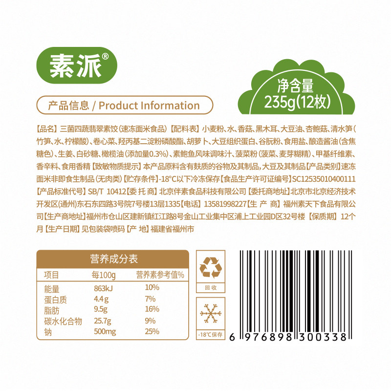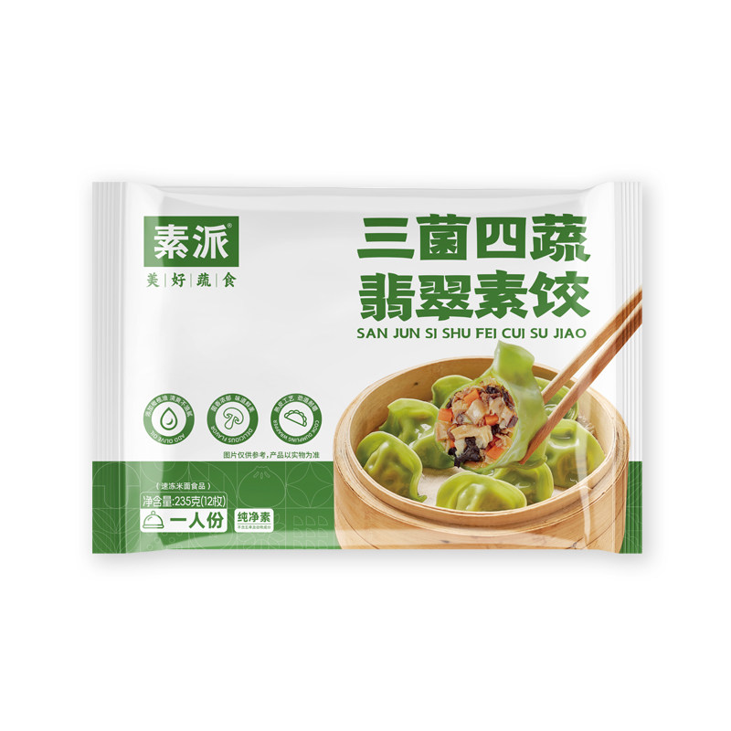 素派三菌四蔬翡翠素饺早餐半成品纯净素水饺蒸饺煎饺12粒/袋235g