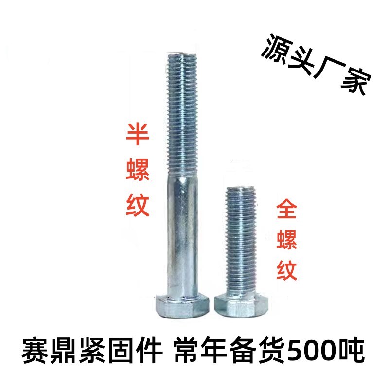 国标4.8级镀锌外六角螺丝螺栓/镀白锌六角头C级GB5783六方M10螺丝