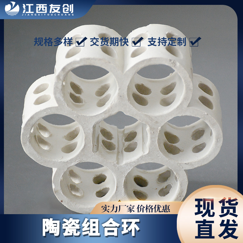 出售 全瓷轻瓷七孔组合环填料脱硫塔带筋七孔连环组合环