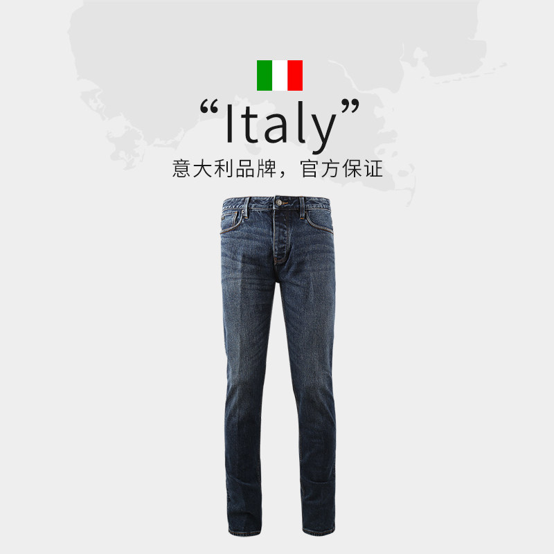 【自营】EMPORIO ARMANI/阿玛尼男士纯色修身纽扣休闲直筒牛仔裤