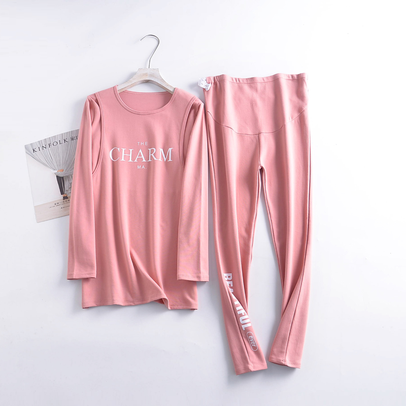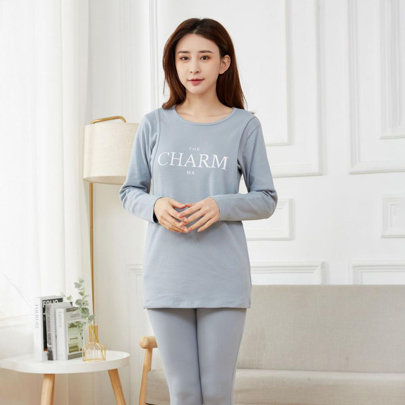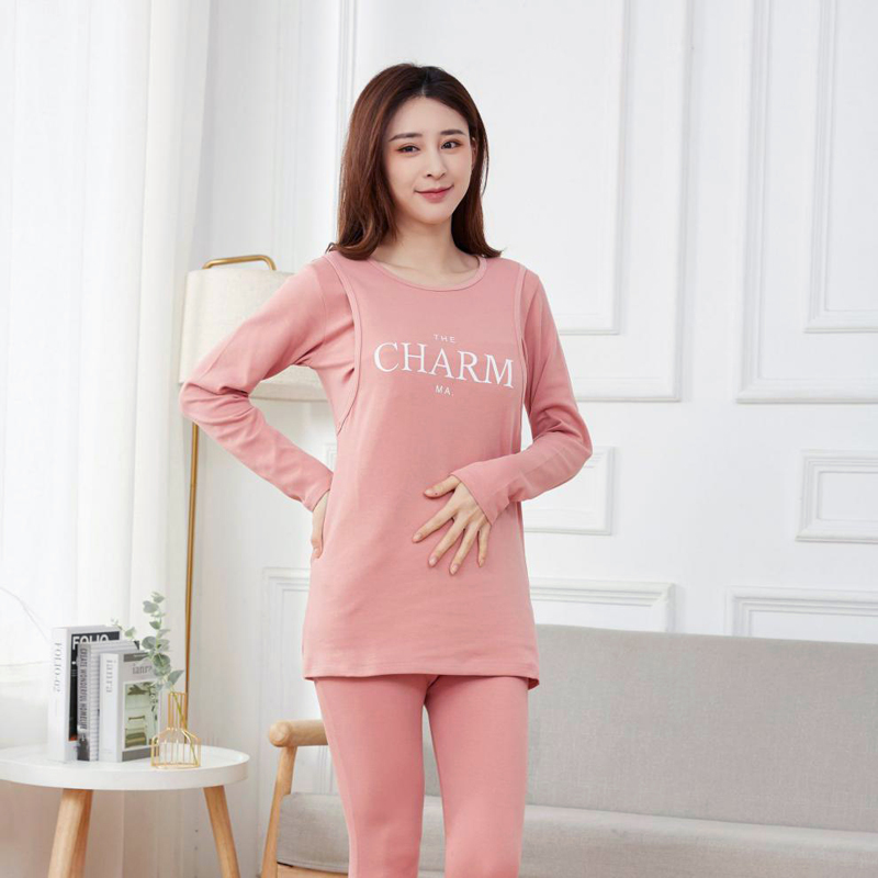 春秋季纯棉圆领套l头侧开口产后长袖长裤哺乳月子服家居服睡衣套